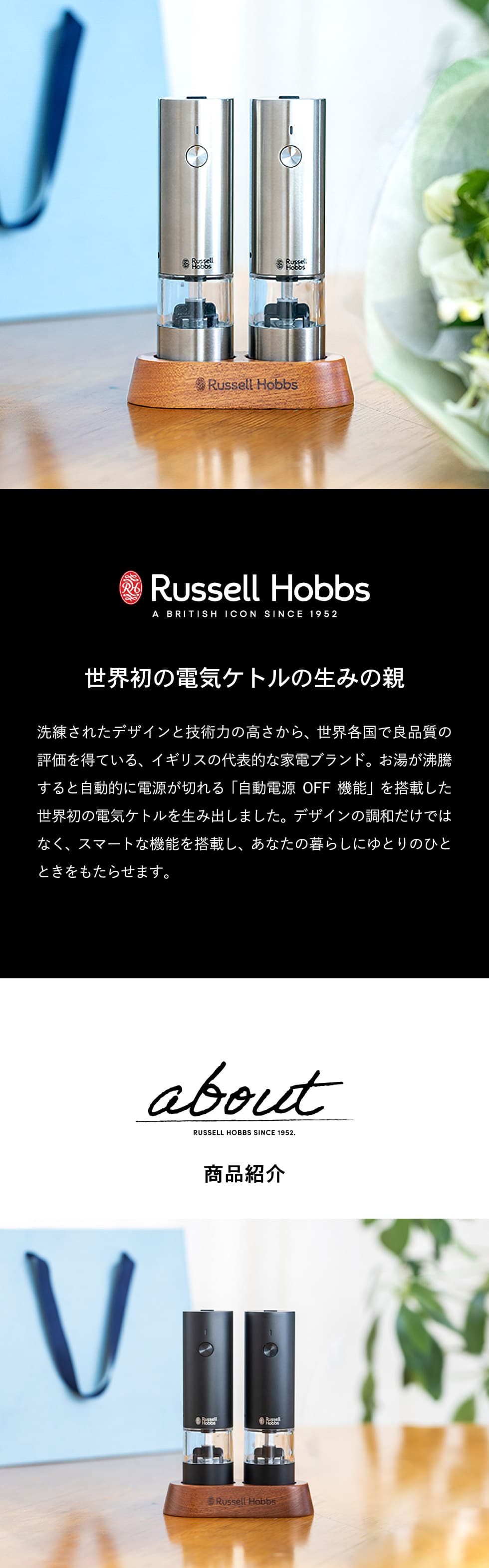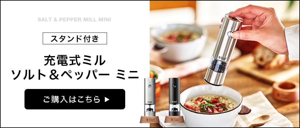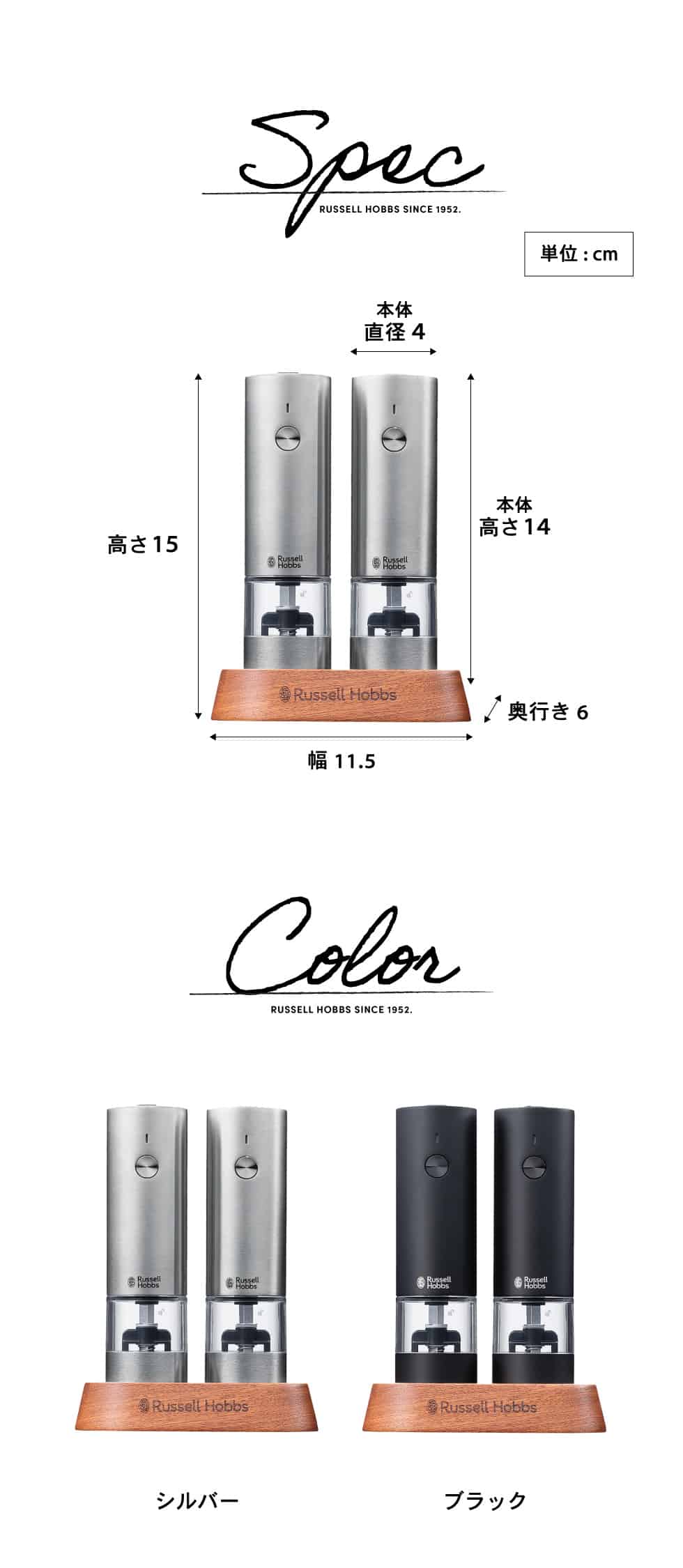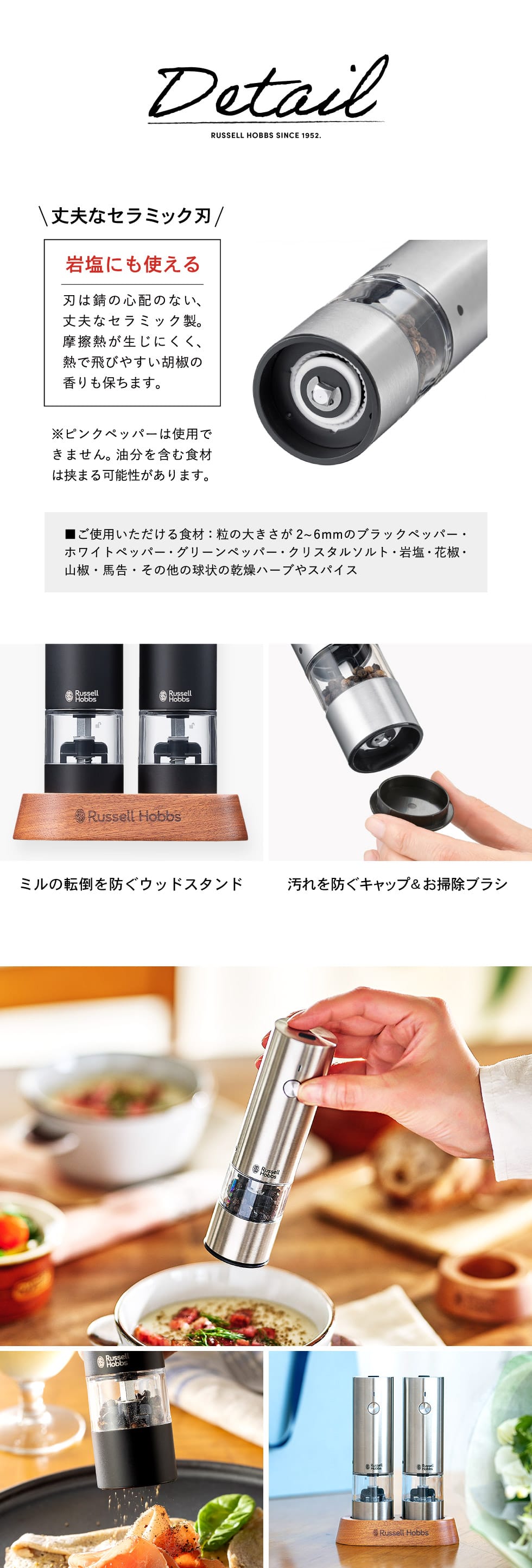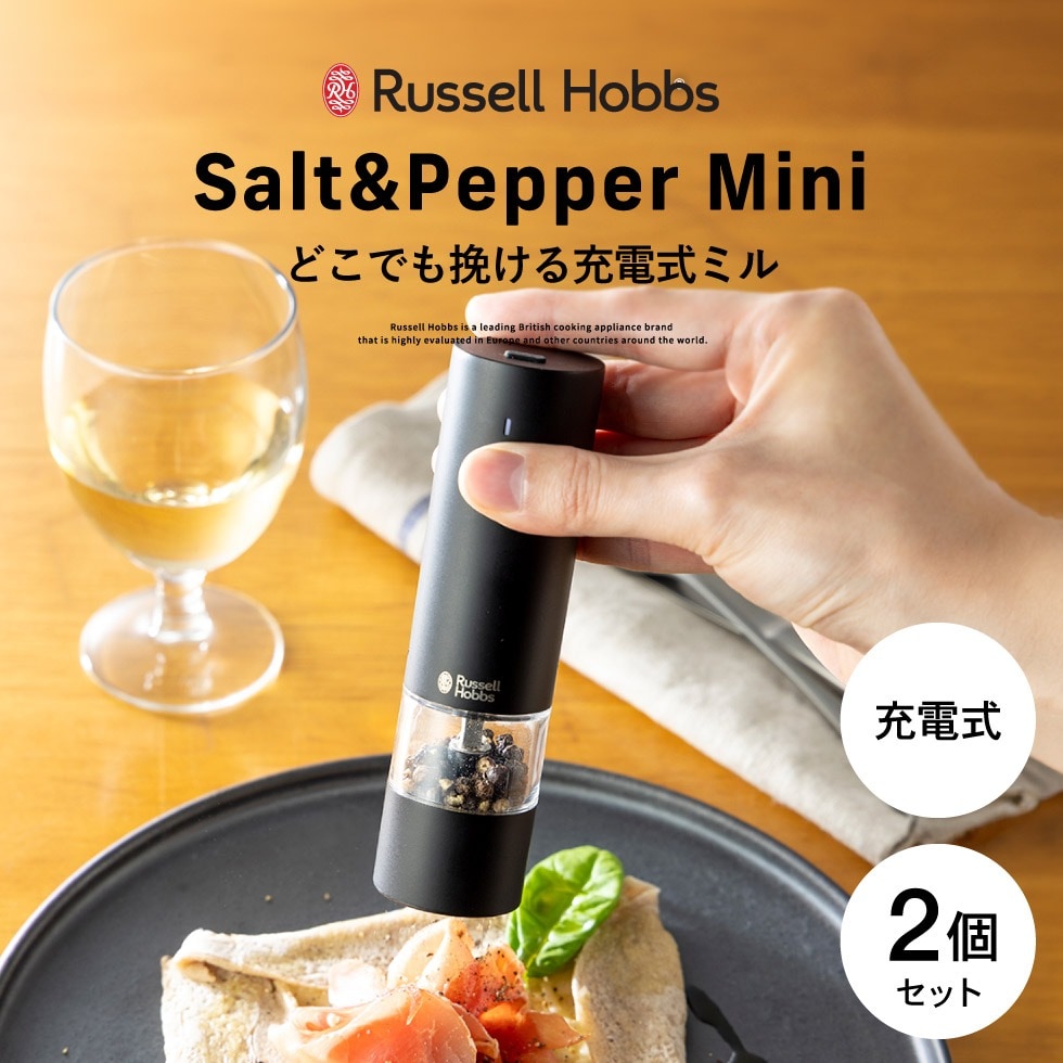 送料無料 ラッセルホブス Russell Hobbs 電動ミル 充電式ミル ソルト&ペッパー ミニ 2本セット 7942JP 7942JP-BK 7942JP-BG / 岩塩挽き 胡椒挽き 粗挽き 細引き ペッパーミル ソルトミル USB充電 マットブラック JGS / ブラック
