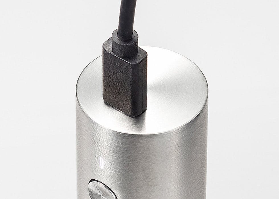 本体は、直径4cm×高さ14cmとコンパクトなハンディサイズ。充電式で電池を入れるスペースをなくしたため、ミニサイズが可能になりました。食卓でも場所をとらないので、いつでも手の届く範囲に置いて便利に使えます。