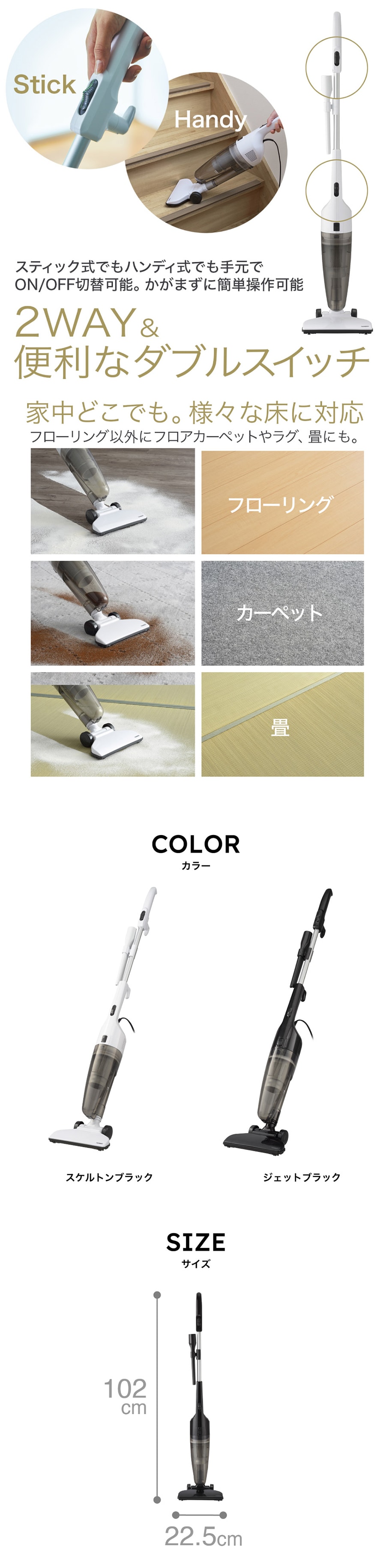 軽いながらもパワーは十分なので、これ1台で部屋中楽々お掃除できます。