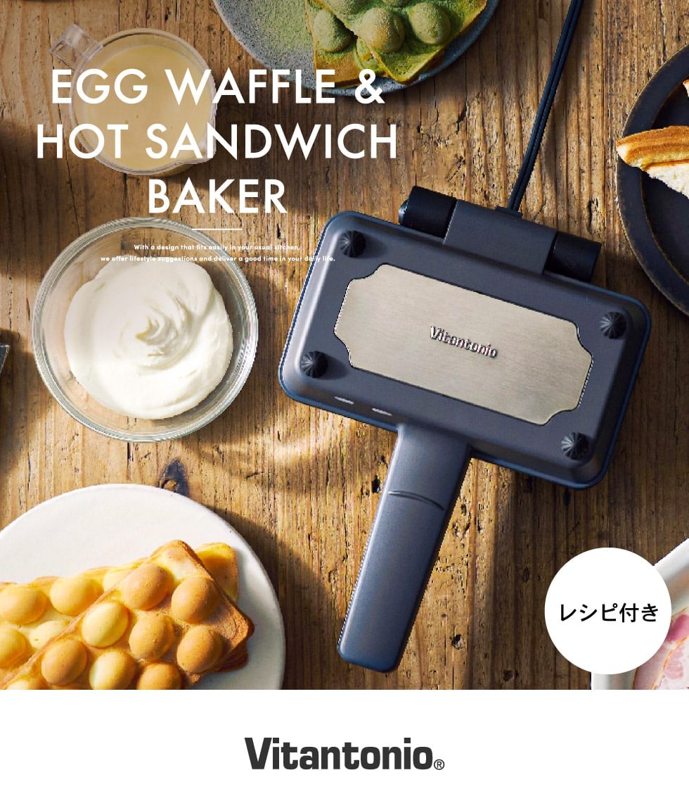 送料無料 ビタントニオ Vitantonio エッグワッフル&ホットサンドベーカー VEH-10-K / ホットサンドメーカー エッグワッフルメーカー プレート2種 バブルワッフル パッフル 電気 食パン 1枚焼き 耳まで 洗える 朝食 おやつ