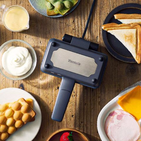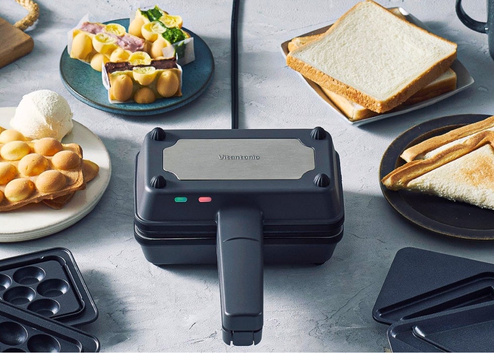 簡単に取り付け・取り外しができる2種類のプレート付き。エッグワッフルプレートは、外はカリッと中はもちもちの食感に焼き上げます。ホットサンドプレートは、食パン1枚を三角に折って焼くハーフサイズ。忙しい朝でもサッと手軽に作れます。お子様も持ちやすく、食べきれるサイズでおすすめです。