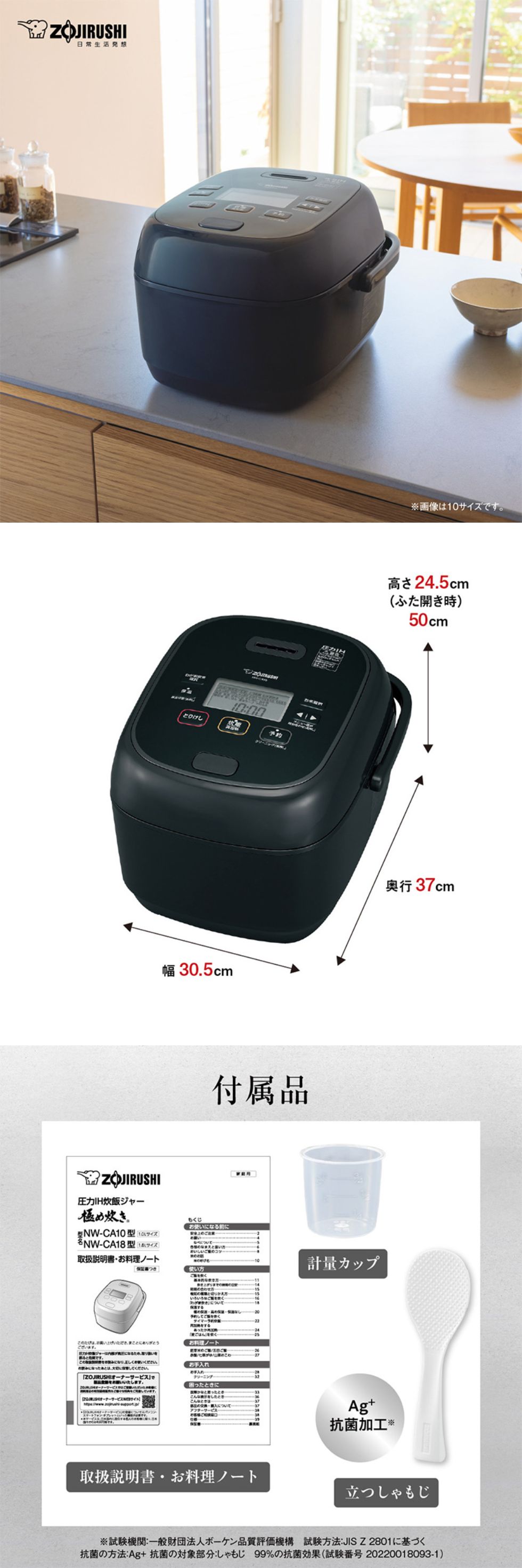 象印 炊飯器 圧力IH炊飯ジャー 1升炊き NW-CA18 / 圧力IH炊飯器 大火力 保温 白米 無洗米 玄米 雑穀米 麦ごはん 炊き込みごはん 内釜3年保証 お手入れ簡単 ZOJIRUSHI ブラック 黒 キッチン家電 調理家電 JGS 送料無料