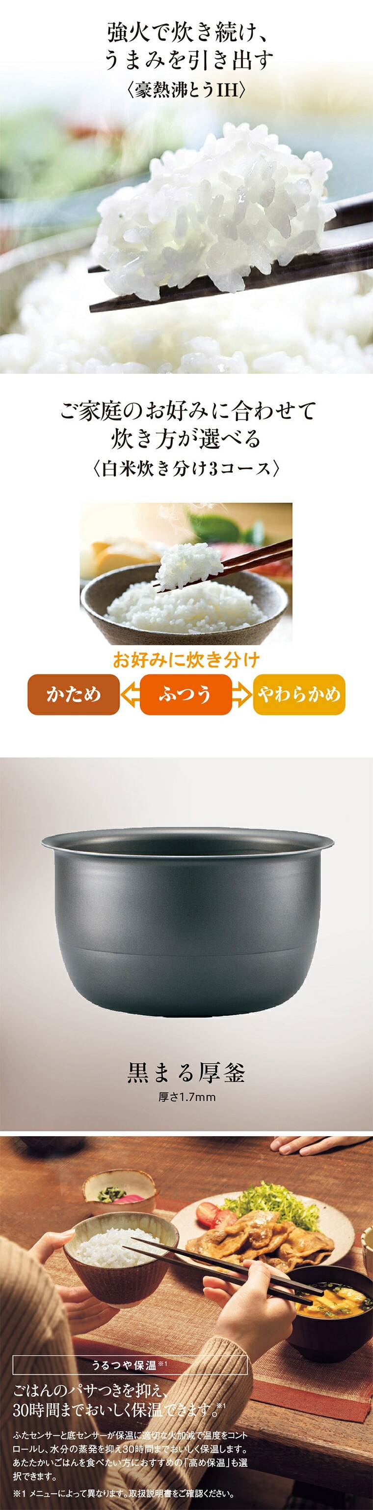 強火で炊き続け、うまみを引き出す「豪熱沸とうIH」。
