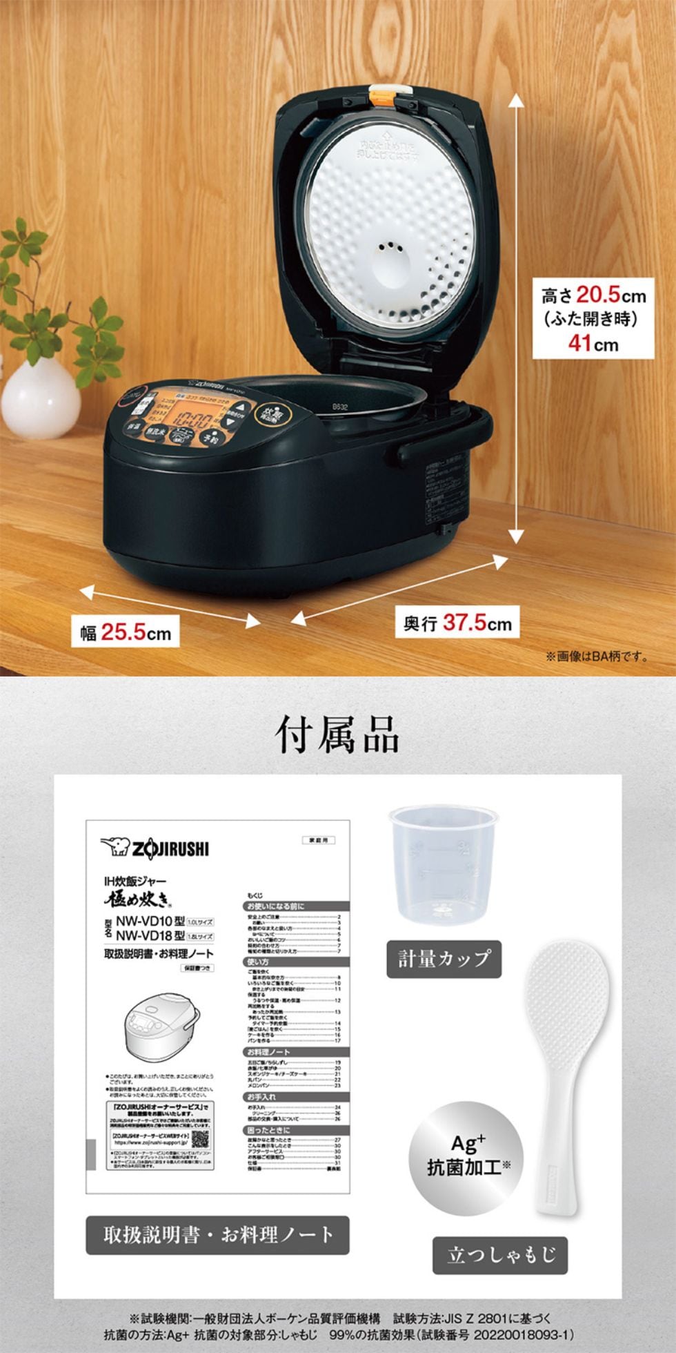 ●付属品:内ぶたセット、なべ、計量カップ、しゃもじ、取扱説明書・お料理ノート兼保証書