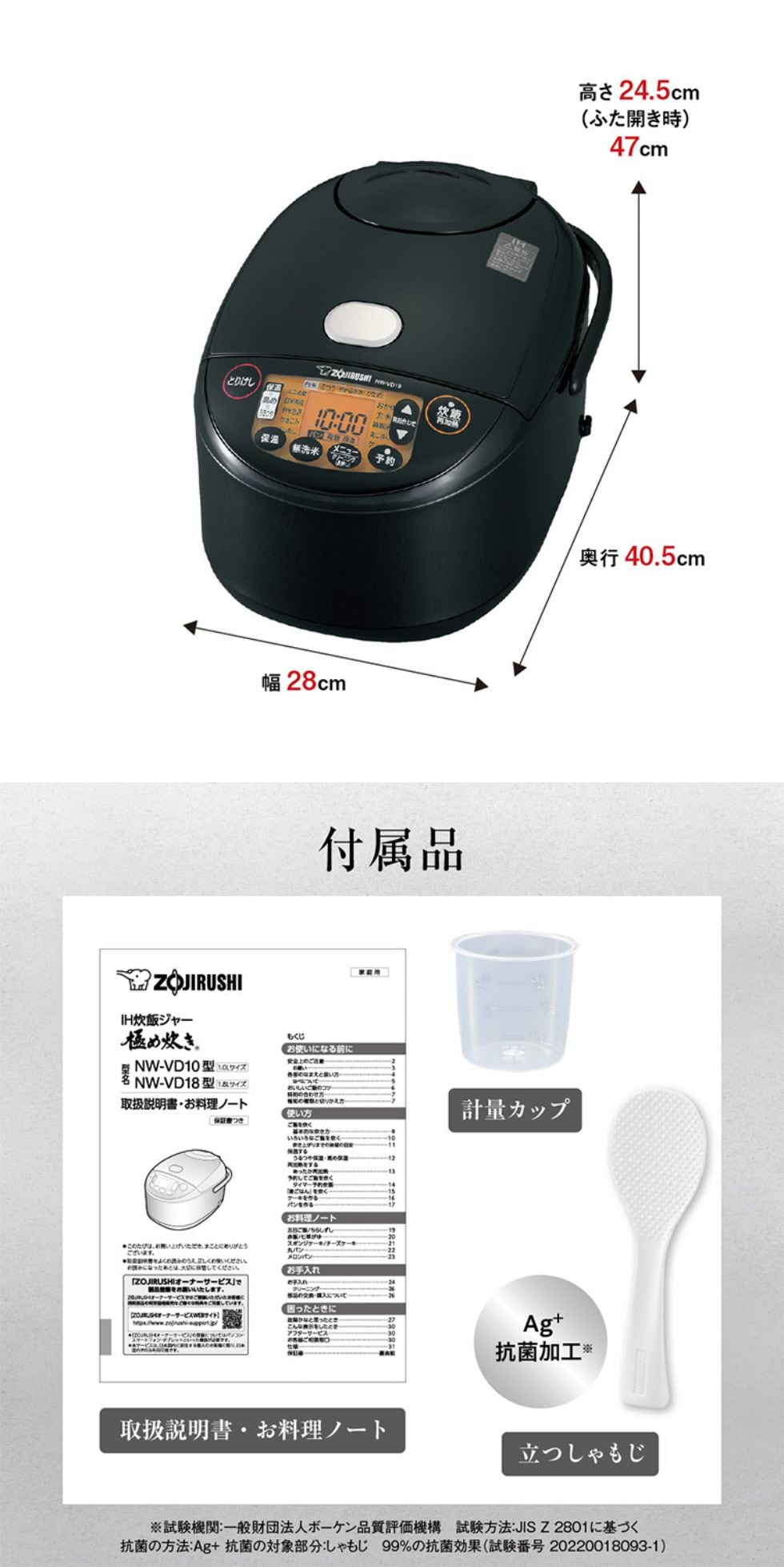 象印 炊飯器 IH炊飯ジャー 1升炊き 極め炊き NW-VD18 / IH炊飯器 高火力 保温 白米 無洗米 玄米 雑穀米 炊き込みごはん 立つしゃもじ付き ZOJIRUSHI ブラック 黒 キッチン家電 調理家電 JGS 送料無料