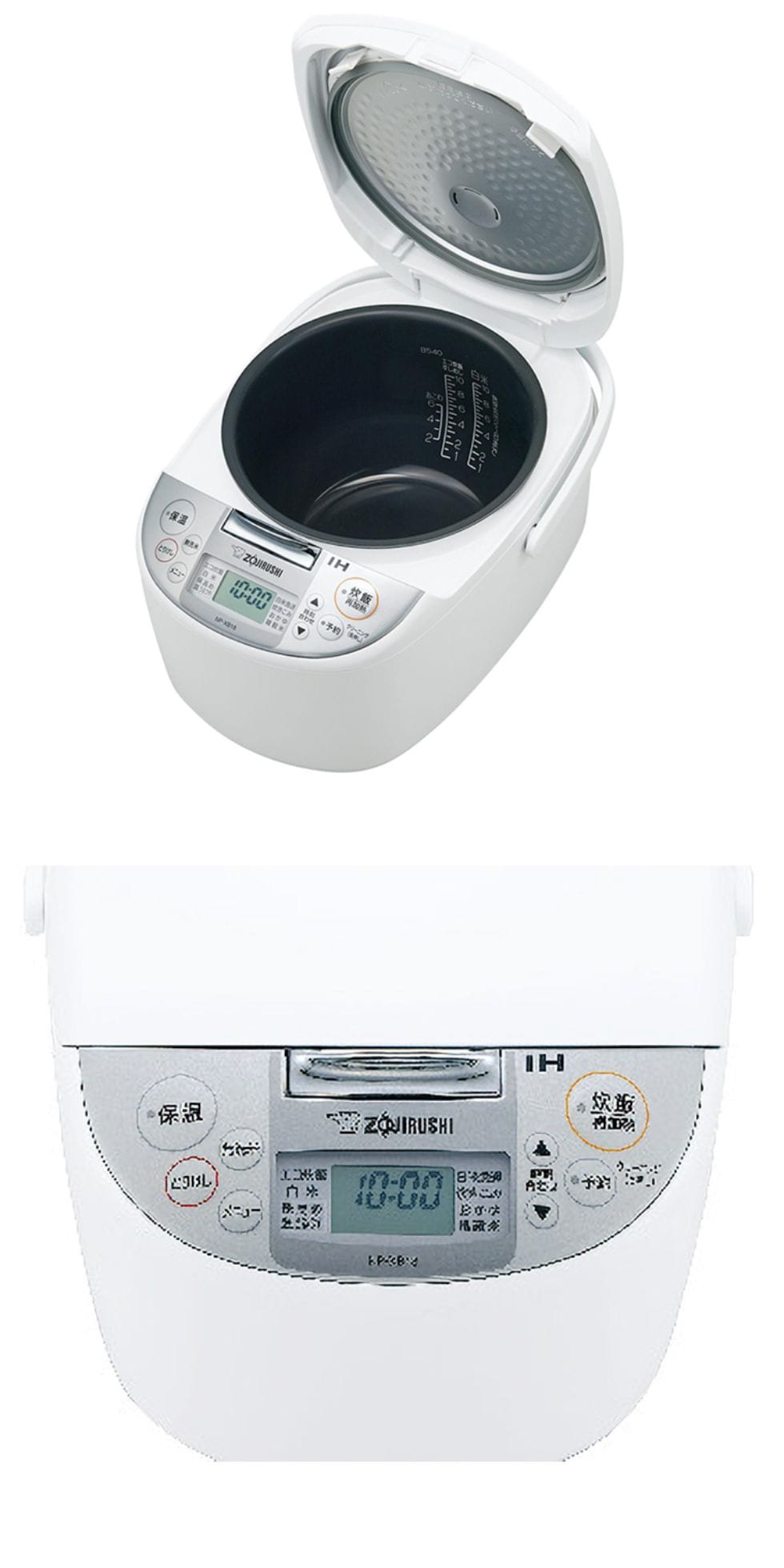 ●素材・材質: フタ、ジョウキコウキャップ、カタ、ドウ、ハンドル、ヒンジカバー、シャモジ、計量カップ:PP。フックボタン:ABS+メッキ。ウチブタ:アルミ。ウチドウ:ガルバリウム鋼板。内釜:アルミ+SUS。