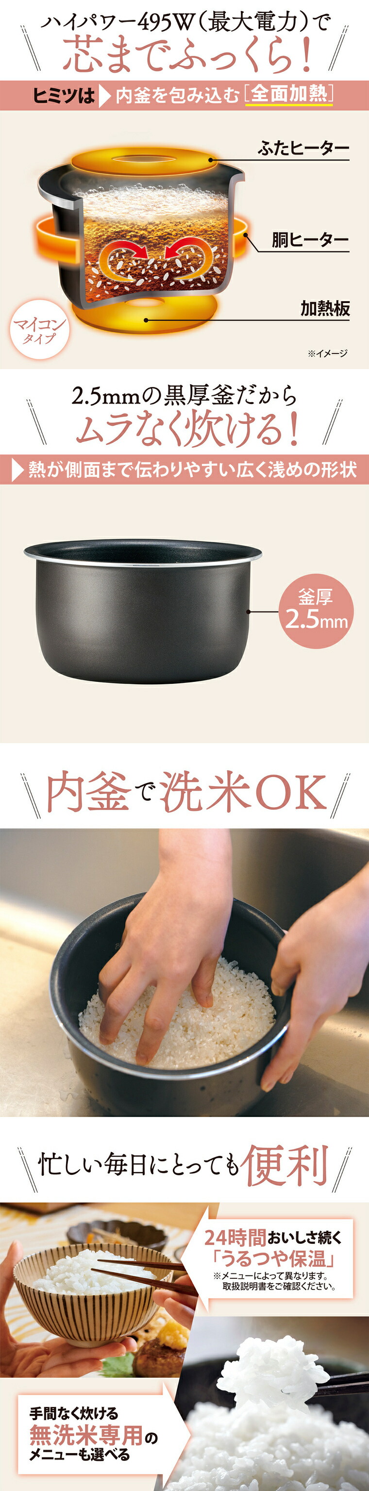 ●付属品:内ぶたセット、なべ、計量カップ、しゃもじ、取扱説明書・お料理ノート兼保証書