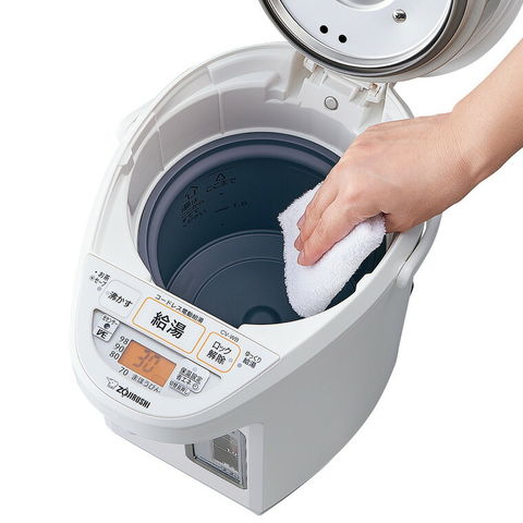 電気とまほうびんを組み合わせた保温により消費電力を抑える「VE電気まほうびん」。