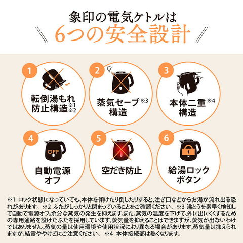 ちょっと大きめのサイズがうれしい電気ケトル。ロックボタンと連動して注ぎ口が開閉するので、注ぎ口からほこりなどが入りにくい「注ぎ口ほこりブロック」構造。