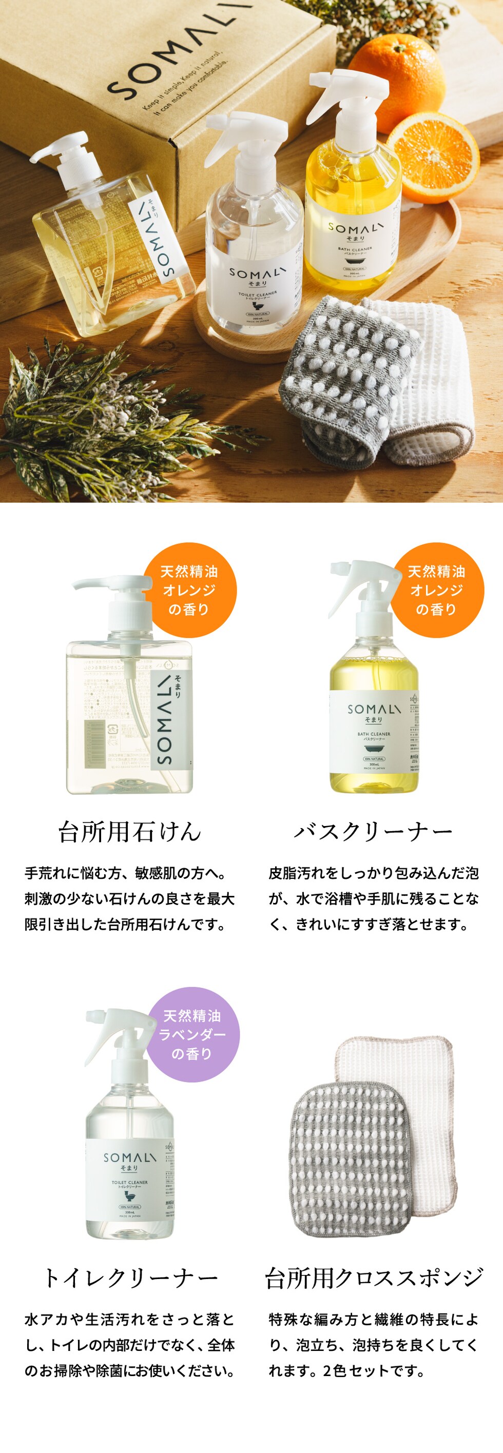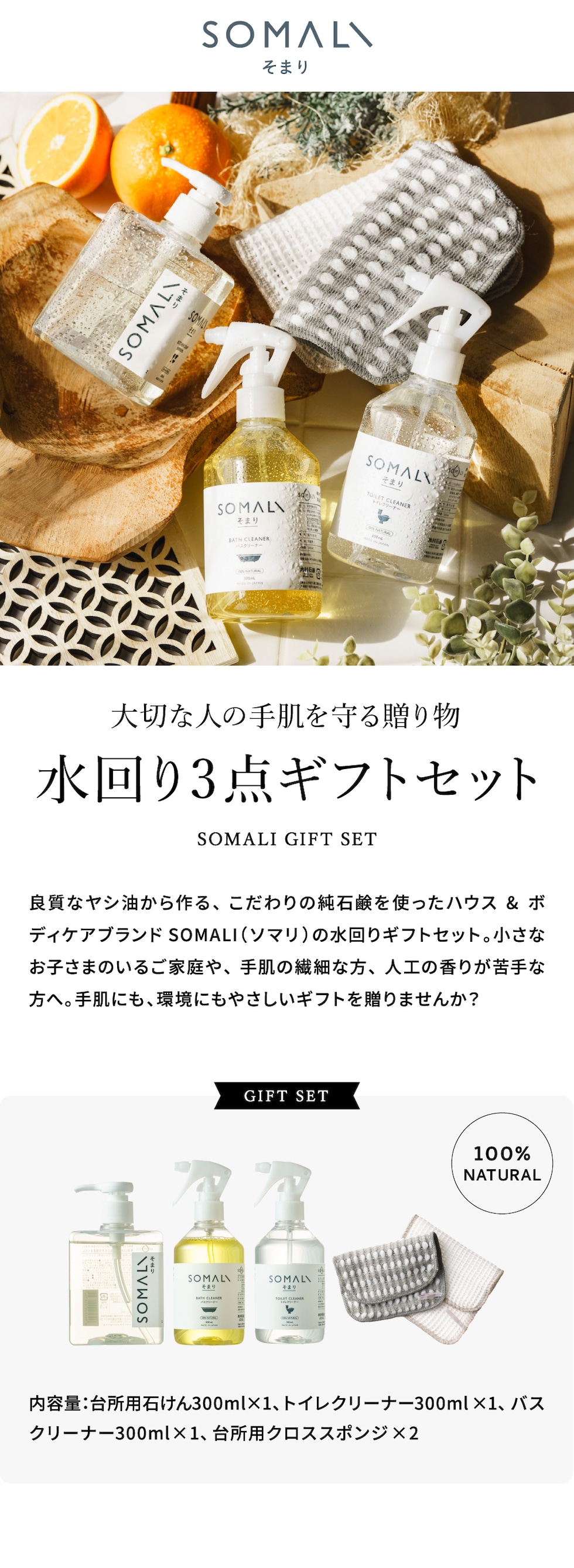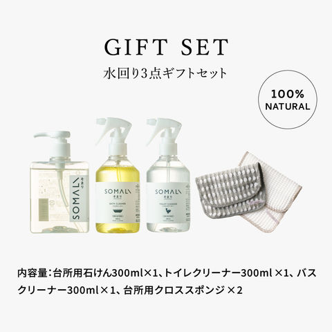 送料無料 木村石鹸 SOMALI ギフトセットH 水回り3点セット / そまり ソマリ 台所用石鹸 トイレクリーナー バスクリーナー スポンジ 石けん エコ洗剤 敏感肌 掃除 快気祝い 内祝い 出産祝い 結婚祝い お返し ギフト gws 父の日ギフト