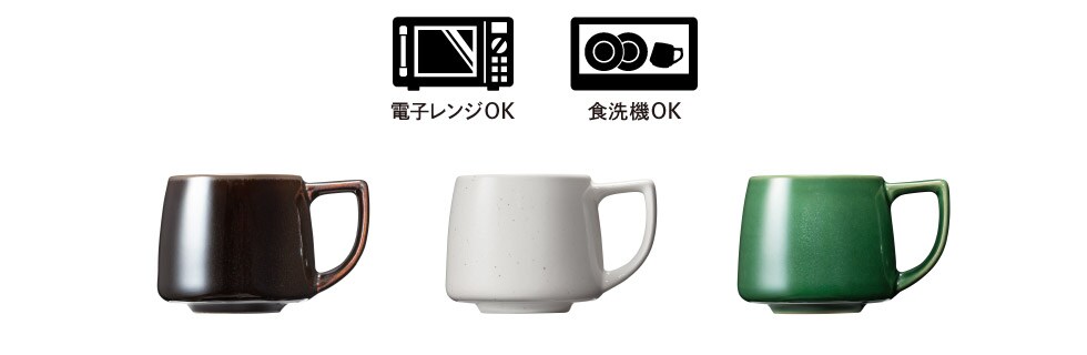 キキマグは、日本最大の陶磁器生産地である岐阜県に古くから伝わる美濃焼で作られています。磁器製なので、電子レンジや食洗機でも使用可能。他の食器と分けて洗う必要もなく、コーヒータイムを楽しんだ後のお手入れもラクラクです。
