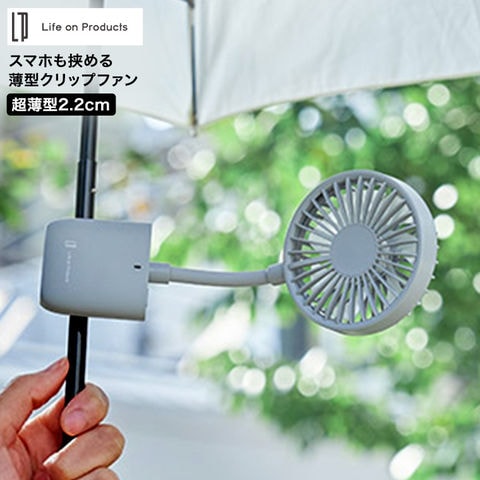 送料無料 スマホも挟める薄型クリップファン LCAF021 / 携帯扇風機 ハンディファン ハンズフリーファン ハンディ扇風機 携帯ファン ミニファン 日傘 スマホ バッグ クリップ式 卓上 小型 手持ち 持ち運び 軽量 USB充電 JGS / スモーキーブルー
