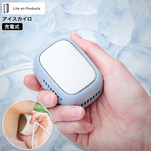 送料無料 アイスカイロ LCAEA011 / 温冷カイロ 冷却プレート ネッククーラー ハンディクーラー 携帯クーラー エコカイロ 瞬間冷却 充電式 USB充電 コンパクト ハンディストラップ オールシーズン ライフオンプロダクツ JGS 母の日 / スモーキーブルー