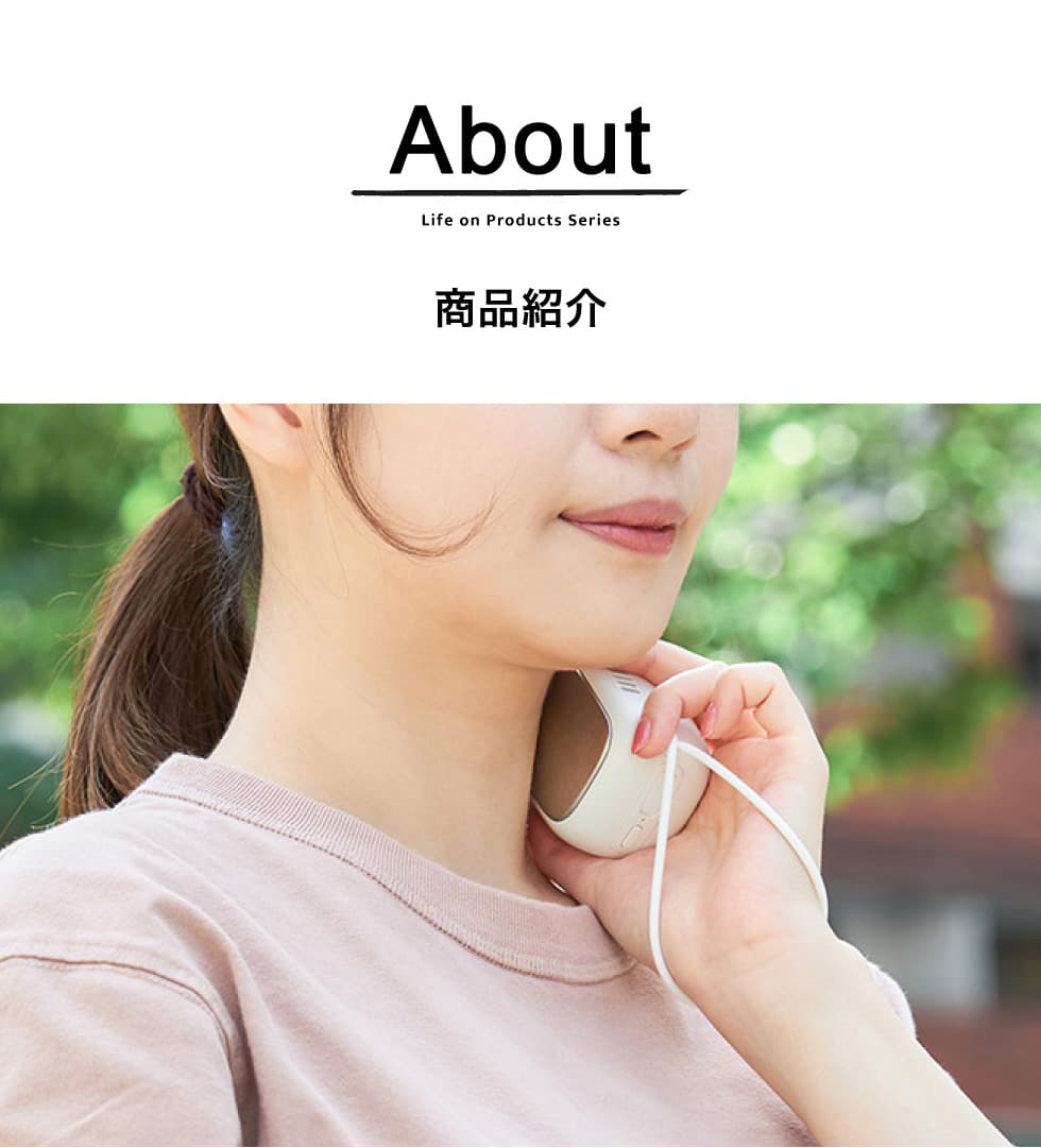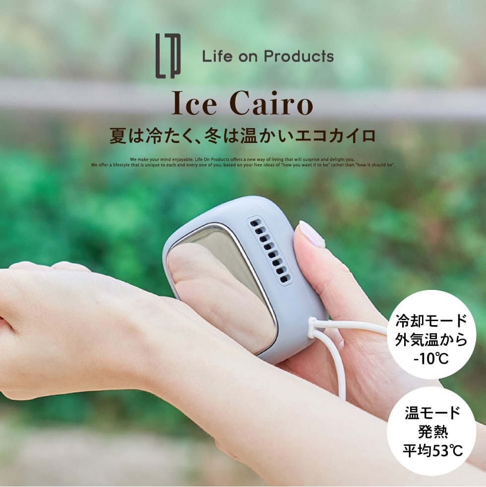 温モードでは、表面温度が平均53℃に保たれた温カイロとしても使えます。冷たくなった手先や寒さを感じる首元をじんわりあたためてくれます。寒い季節はもちろん、夏場のエアコンが効きすぎて体が冷えてしまった時にも最適です。