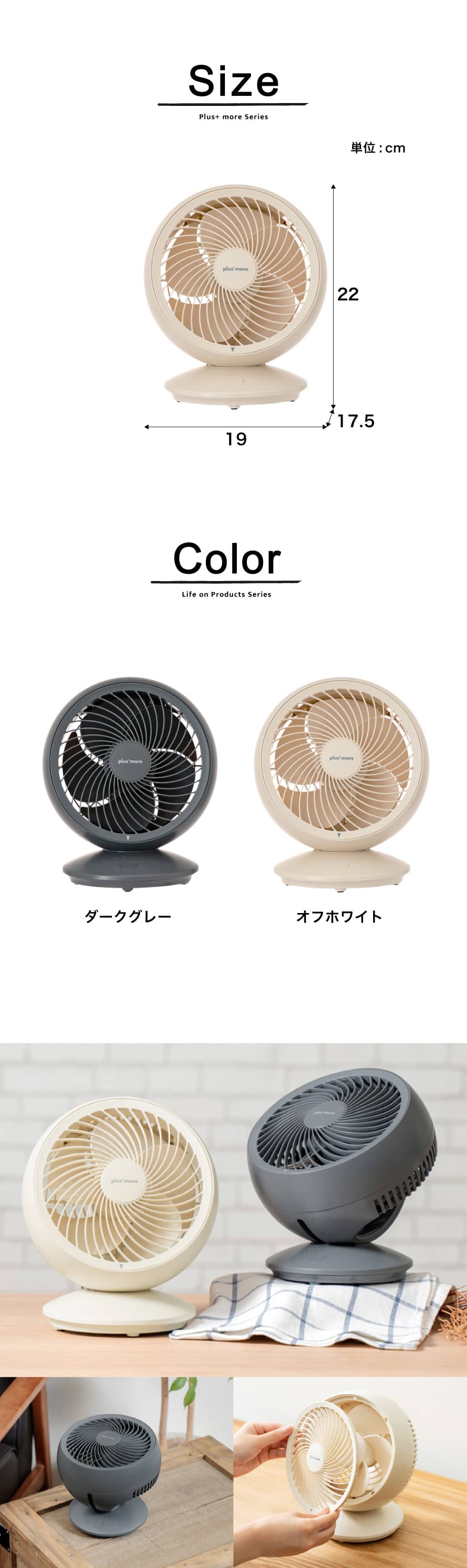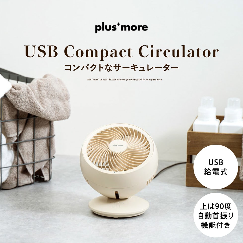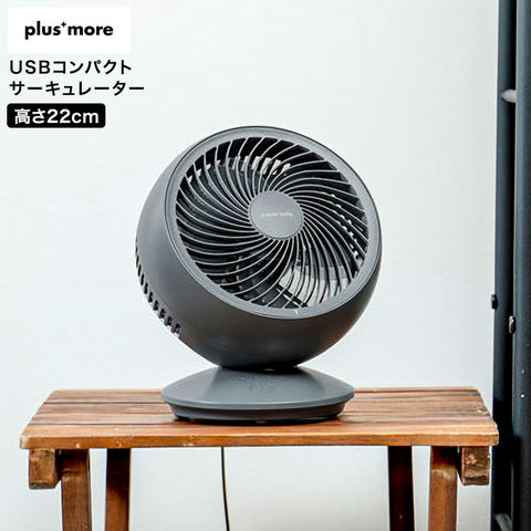 送料無料 USBコンパクトサーキュレーター MO-F019 / 扇風機 USB給電式 左右自動首振り 小型 卓上 静音 リビングファン ポータブルファン オフィス 寝室 省スペース plus more プラスモア ライフオンプロダクツ JGS 母の日 / ダークグレー