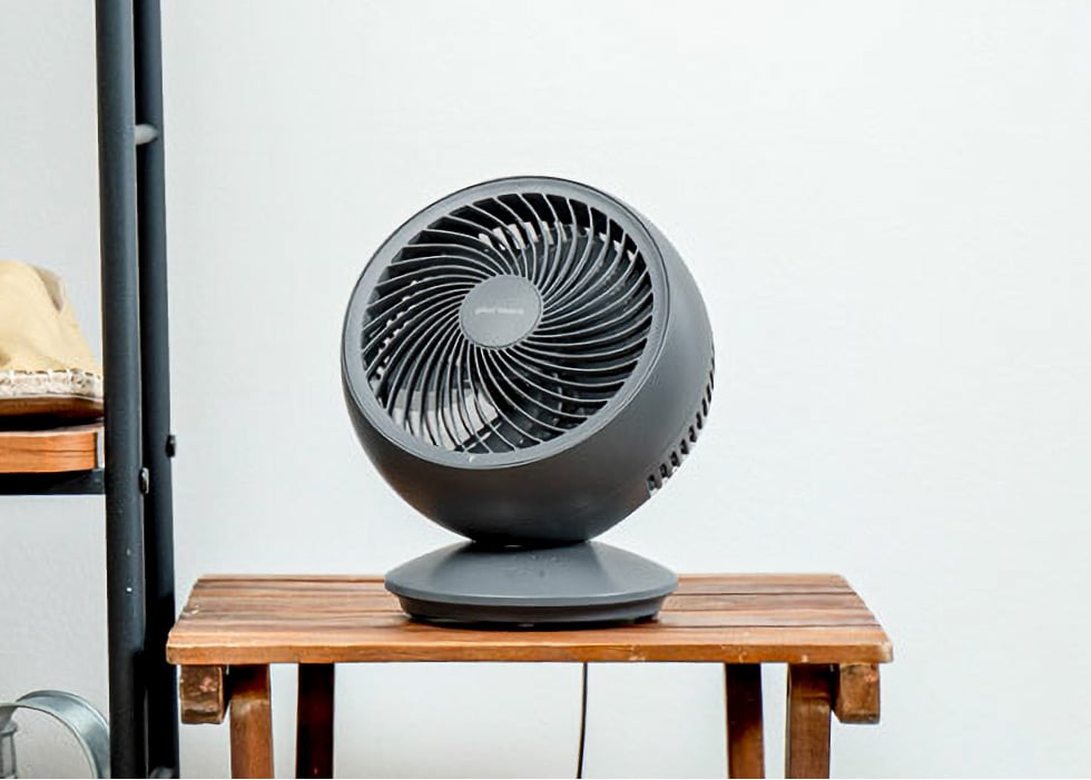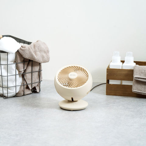 コンパクトなUSB給電式サーキュレーターです。パソコンや周辺機器など、USBポートにつないで使えます。モバイルバッテリーとつなげば持ち運びもできて、場所を選ばず使用可能。風量は3段階で調節でき、自動首振り機能がついています。角度は約90度まで上向きに調整できるため、キッチンやリビングの空気循環に役立ちます。