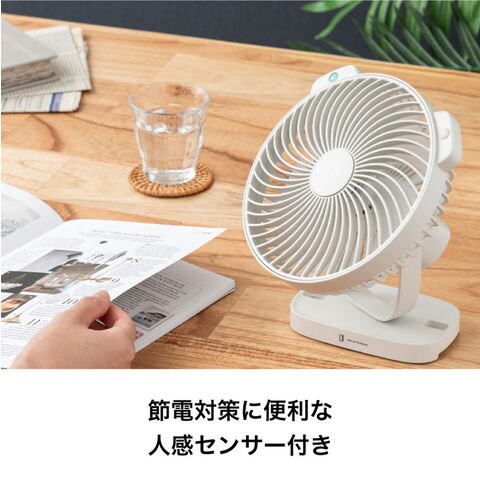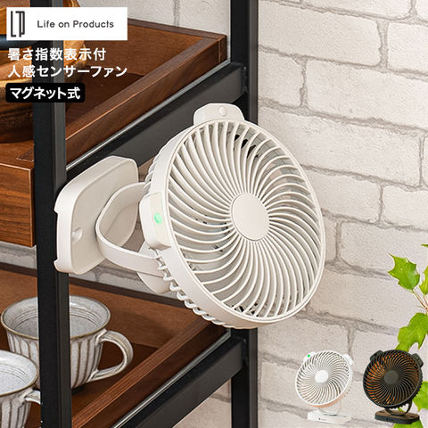 送料無料 暑さ指数表示付人感センサーマグネットファン LCAF030 / 卓上扇風機 サーキュレーター 壁掛け 吊り下げ 磁石 USB充電 風量4段階 リズム 節電 パワフル送風 ミニファン 静音 首振り ライフオンプロダクツ JGS 母の日