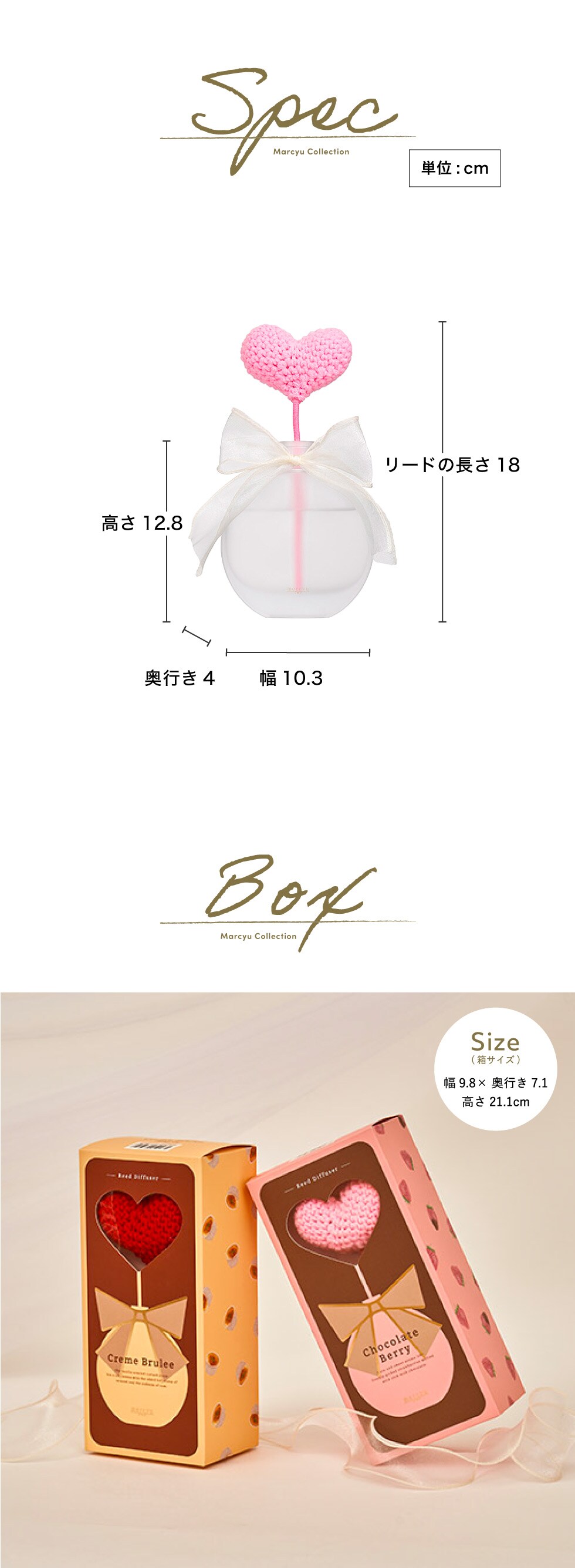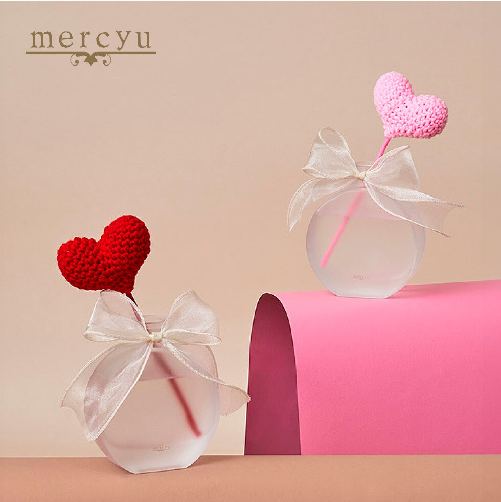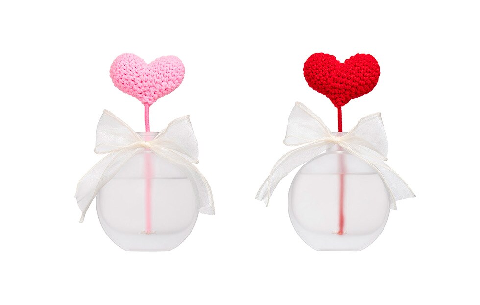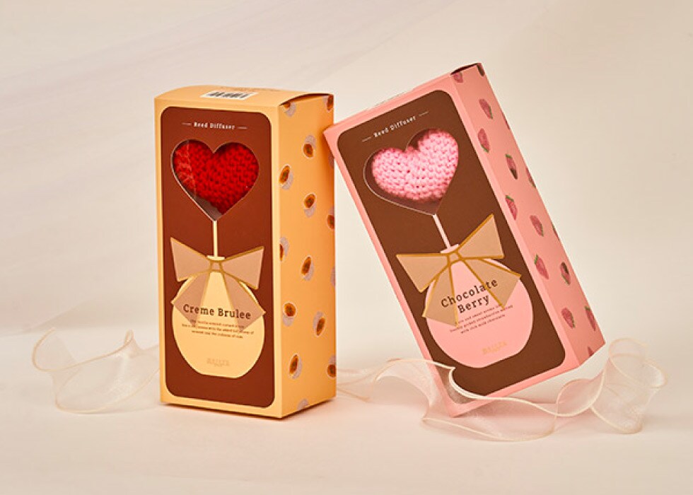 スイーツのような甘い香りに合わせ、リードスティックはふわっとやわらかな毛糸素材のハートを採用。ハートは赤とピンクの2色展開です。
