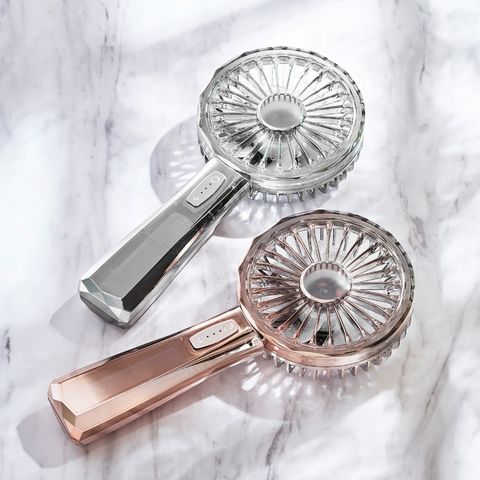 アウトドアや野外フェスで、美しい輝きと存在感を放つハンディファンです。ライトは点灯と点滅の2パターンから選択可能。風量は3段階、3.5時間の充電で最大7.5時間稼働します。曲線とクリスタルカットのデザインは、ハーフミラーを通した光をより引き立たせ、夏の日に静かなきらめきを添えてくれます。