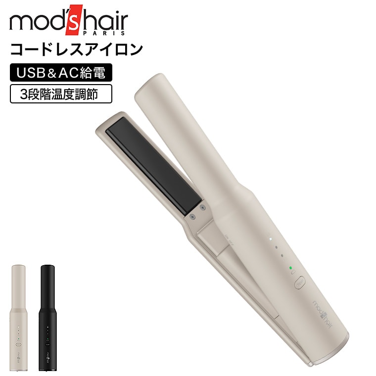 送料無料 モッズヘア コードレスストレートアイロン MHPS-2081 / USB充電式 ヘアアイロン ストレートアイロン ヘアーアイロン カール コテ 前髪 小型 ミニ 軽量 コンパクト ポーチ付き 海外 旅行 mod's hair JGS / ブラック