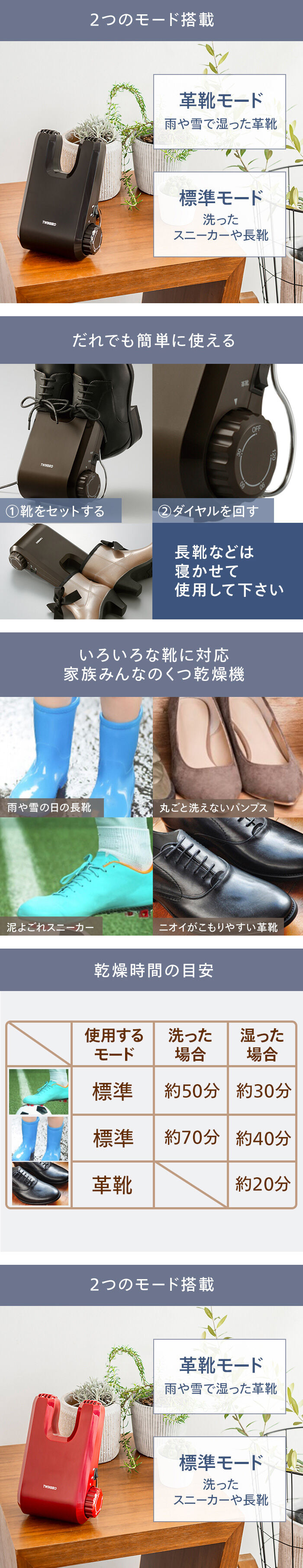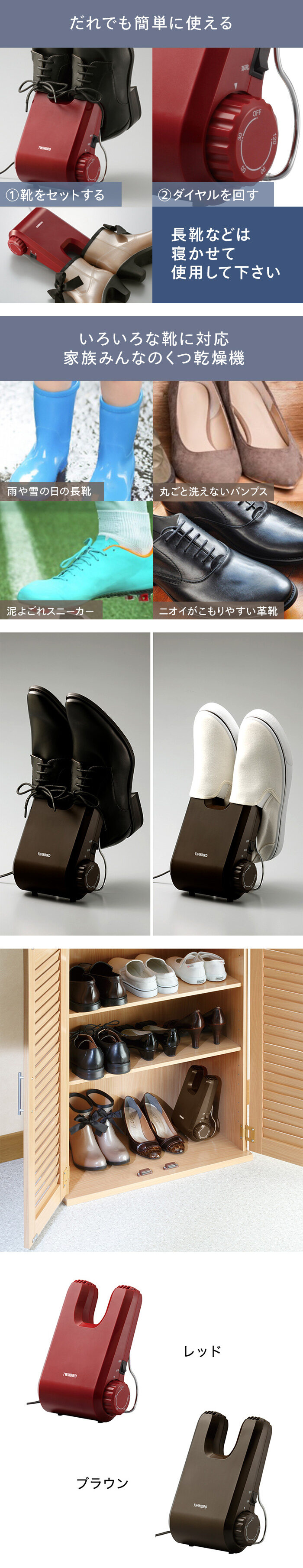 ツインバード くつ乾燥機 SD-4546R SD-4546BR 送料無料 / 靴乾燥機 シューズドライヤー シューズドライ スニーカー 運動靴 上履き 上靴 革靴 ブーツ 長靴 コンパクト 収納 乾燥器 梅雨 脱臭 湿気 臭い TWINBIRD / レッド