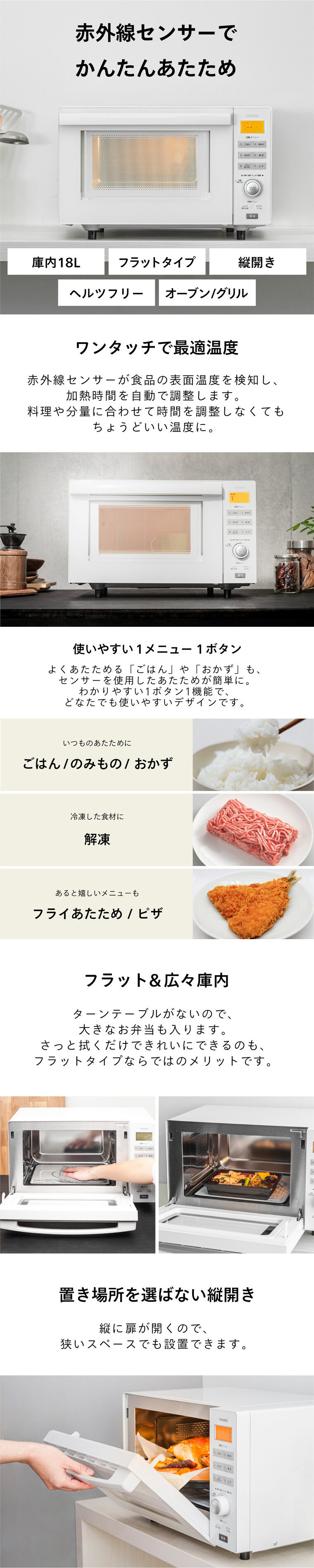 ツインバード センサー付フラットオーブンレンジ ホワイト DR-E852W 送料無料 / 18L フラットテーブル 赤外線センサー 自動温め レンジ オーブン グリル 解凍 シンプル 縦開き 白 キッチン家電 調理家電 TWINBIRD