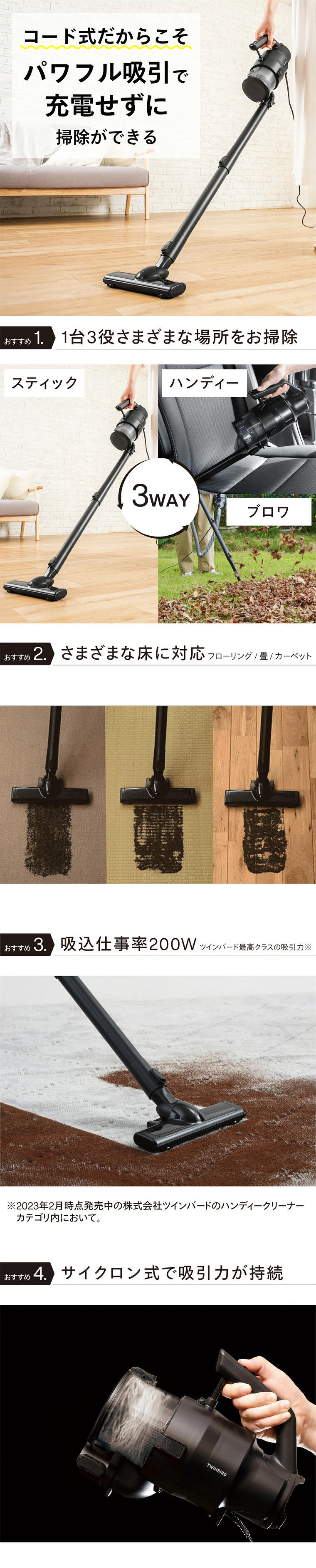ツインバード パワーハンディークリーナー EHC-EB54B ブラック 送料無料 / 掃除機 クリーナー スティッククリナー サイクロン パワフル ブロワ機能 ブロワー ブロワー 強力 吸引 車内掃除 カークリーナー TWINBIRD