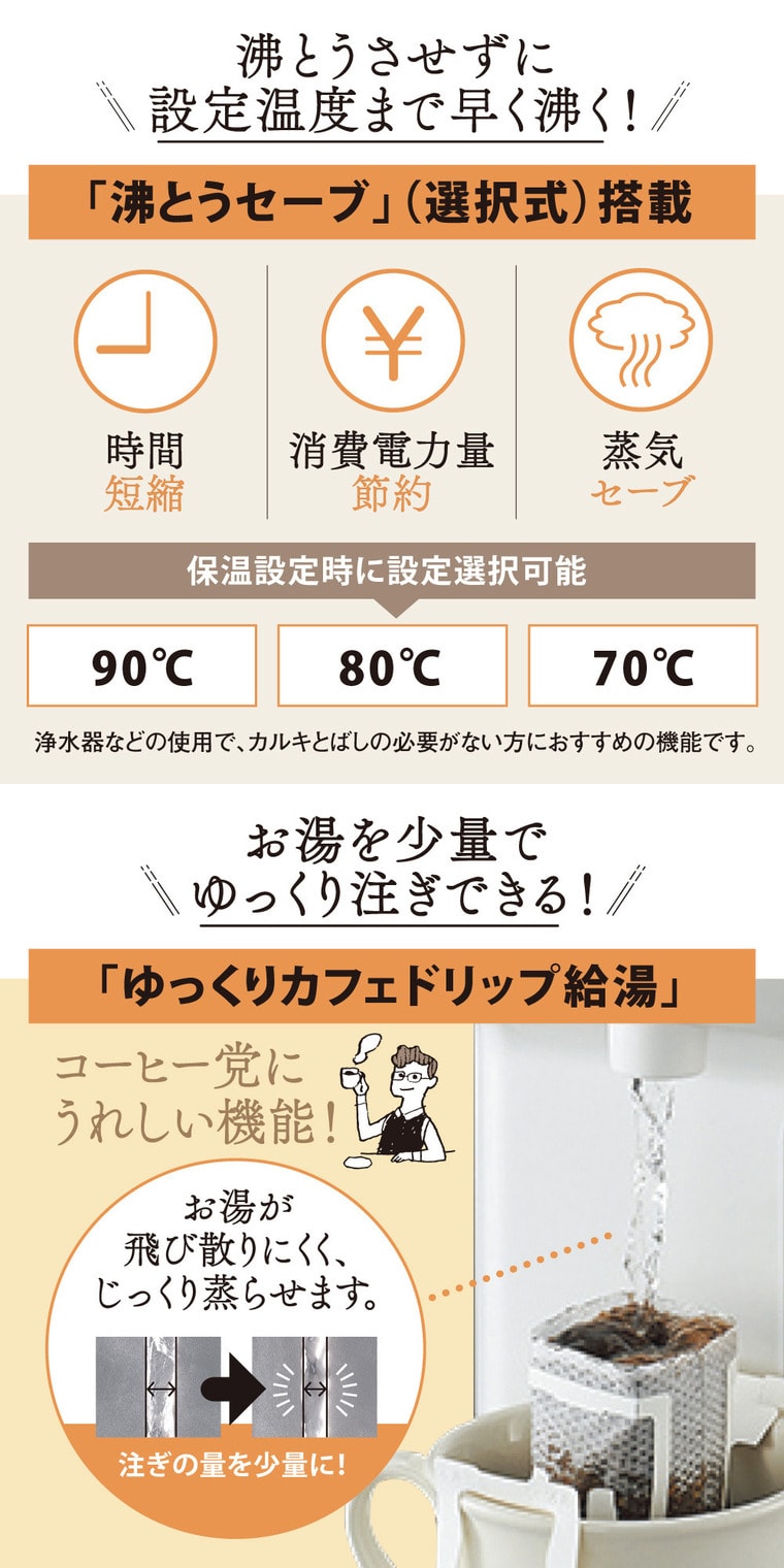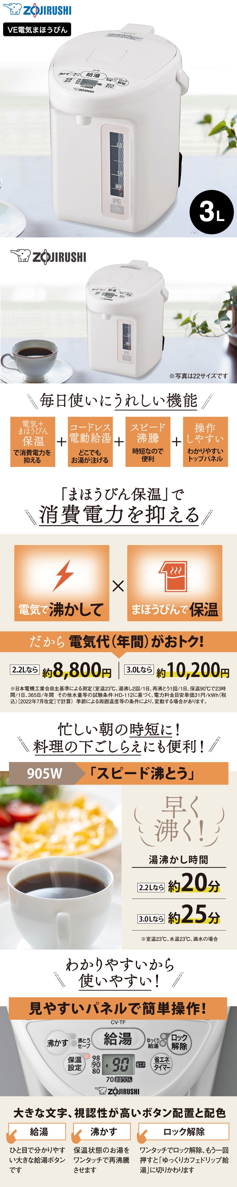 象印 VE電気まほうびん 3.0L 優湯生 マイコン沸とう CV-TF30 送料無料 / 電気ポット 湯沸かしポット 3L 電気ケトル 98℃ 90℃ 80℃ 70℃ ミルク作り カフェドリップ スピード沸とう 省エネ ZOJIRUSHI キッチン家電 調理家電 JGS