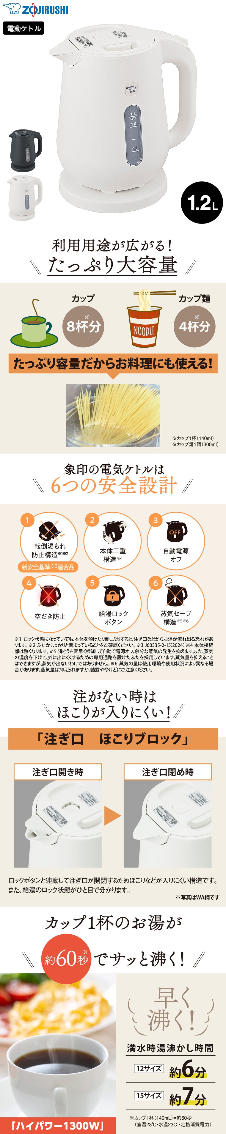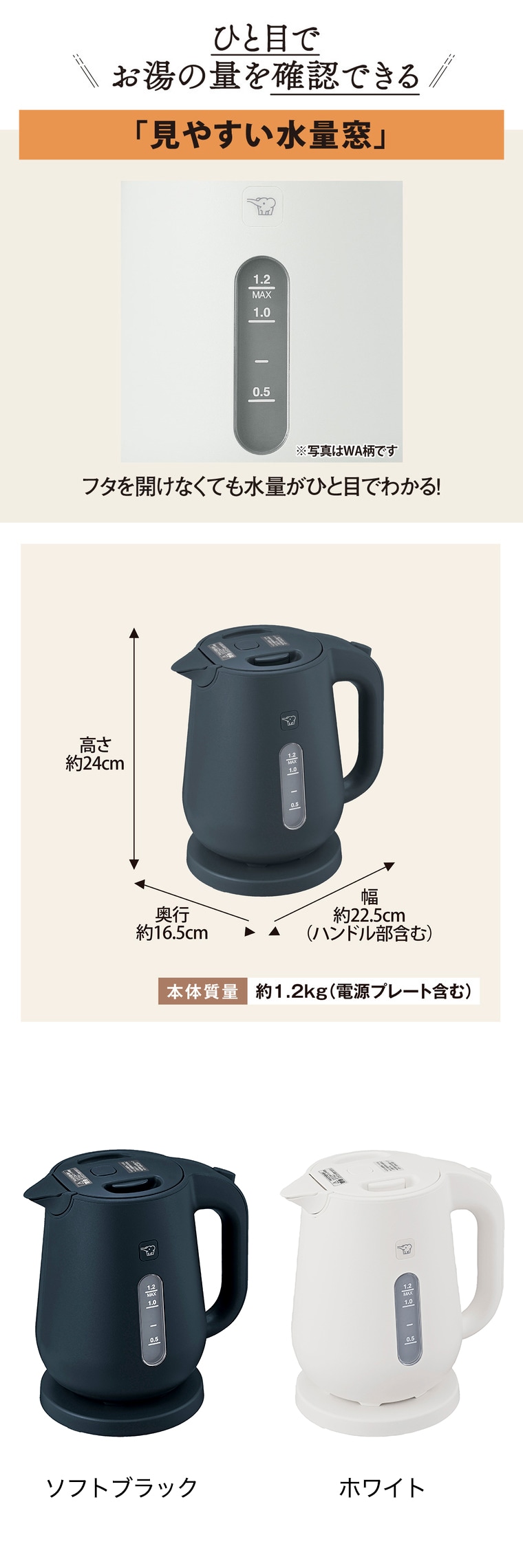 象印 電気ケトル 1.2L CK-VB12 送料無料 / ケトル 転倒お湯もれ防止 二重構造 蒸気レス ほこりブロック 空だき防止 電気ポット 湯沸かしポット 湯沸かし器 ホワイト ソフトブラック ZOJIRUSHI キッチン家電 調理家電 JGS / ソフトブラック