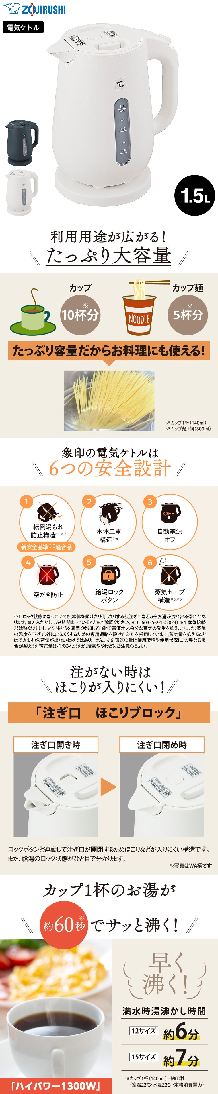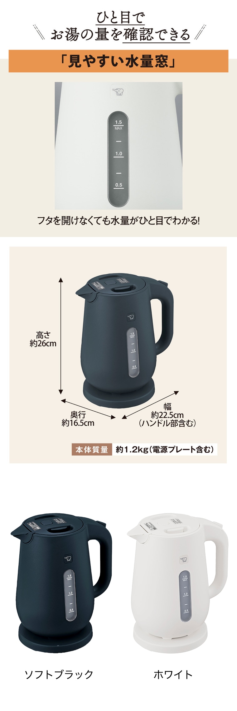 象印 電気ケトル 1.5L CK-VB15 送料無料 / ケトル 転倒お湯もれ防止 二重構造 蒸気レス ほこりブロック 空だき防止 電気ポット 湯沸かしポット 湯沸かし器 ホワイト ソフトブラック ZOJIRUSHI キッチン家電 調理家電 JGS / ソフトブラック