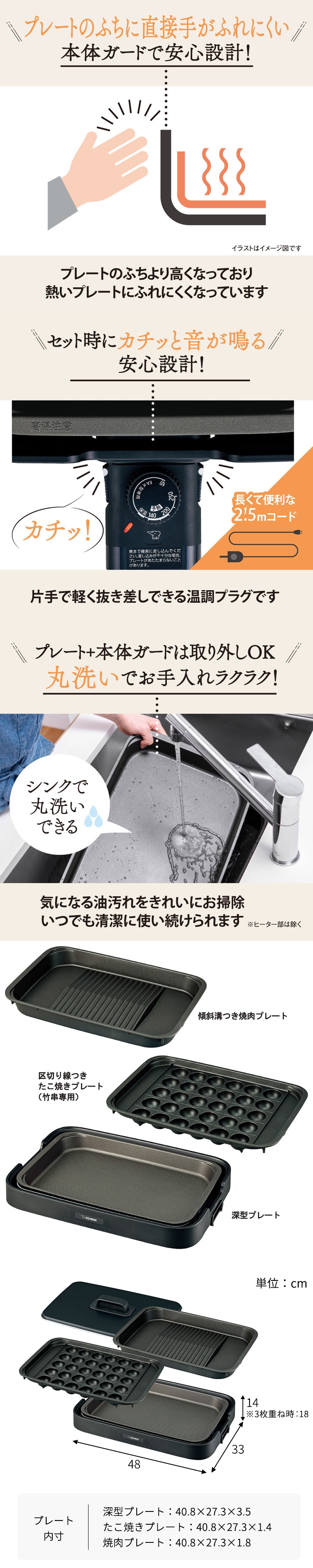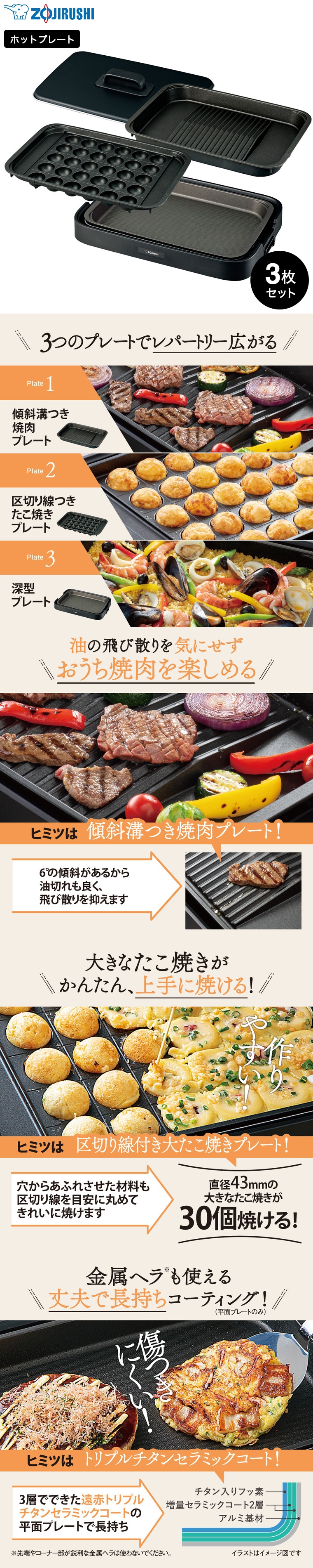 象印 ホットプレート やきやき EA-KJ30 送料無料 / 3枚プレート 焼肉プレート 深型プレート たこ焼きプレート 金属ヘラ たこ焼き器 焼肉 焼き肉 お好み焼き 焼きそば グリル鍋 ZOJIRUSHI キッチン家電 調理家電 JGS
