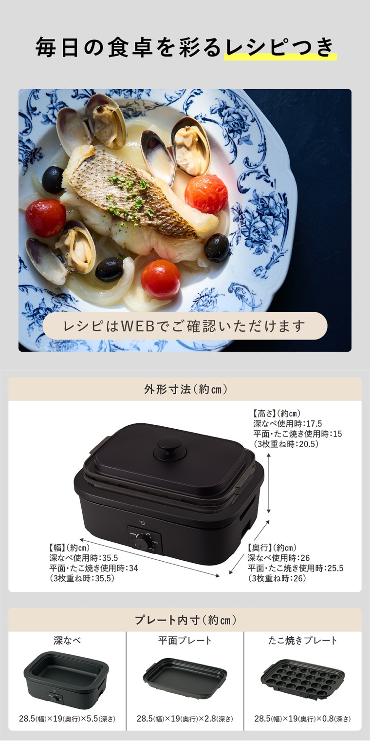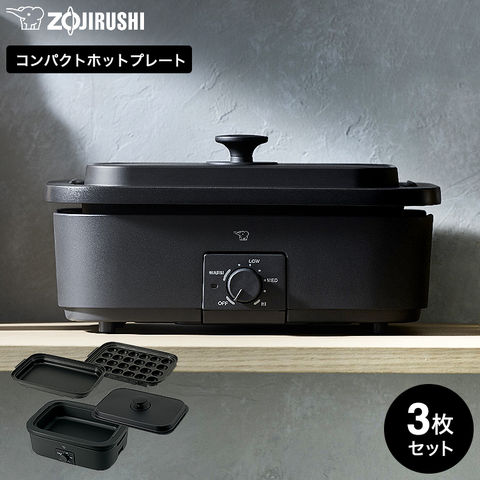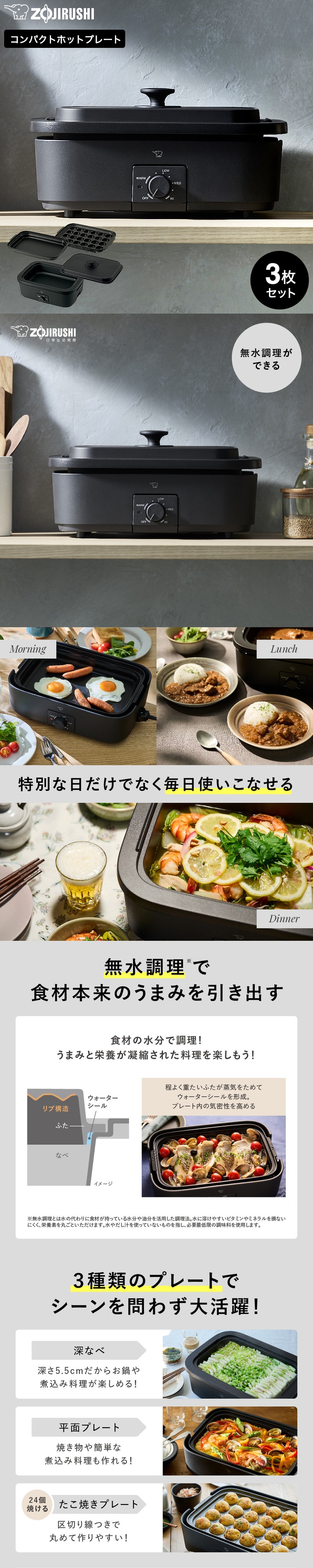 象印 デイリーコンパクトプレート ブラック EJ-DE30 送料無料 / ホットプレート 無水調理対応 3枚プレート 深なべ 平面プレート たこ焼きプレート グリル鍋 鍋 煮込み料理 たこ焼き器 ZOJIRUSHI キッチン家電 調理家電 JGS