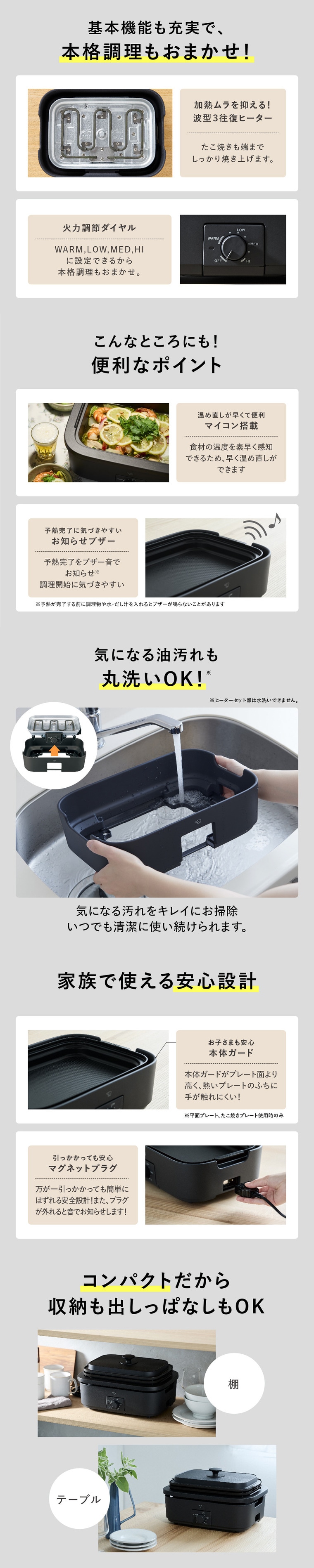 平面プレート・たこ焼きプレート使用時:約 幅34×奥行25.5×高さ15cm