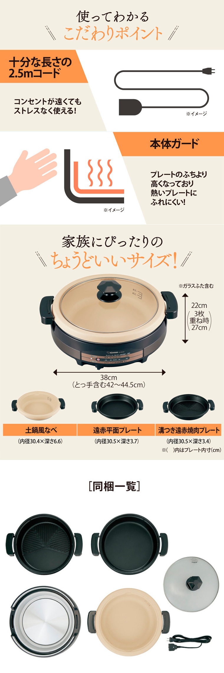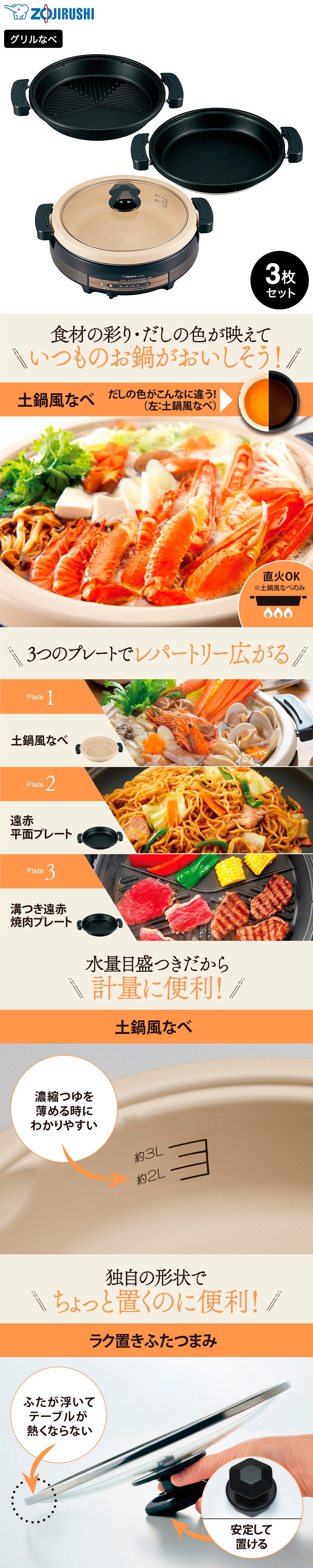象印 グリルなべ ブラウン EP-RW30 送料無料 / 3枚プレート グリル鍋 卓上鍋 電気鍋 ホットプレート 土鍋風 なべ料理 鍋料理 煮込み料理 焼き肉 焼肉 焼きそば お好み焼き 水量目盛つき ZOJIRUSHI キッチン家電 調理家電 JGS