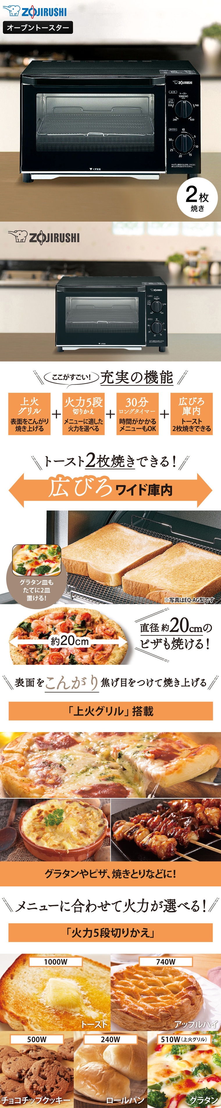 象印 オーブントースター こんがり倶楽部 マットブラック EQ-AH22 送料無料 / 食パン 2枚 トースター パン焼き機 トースト グラタン ピザ クッキー パン 餅 もち 焼き芋 コンパクト ZOJIRUSHI キッチン家電 調理家電 JGS