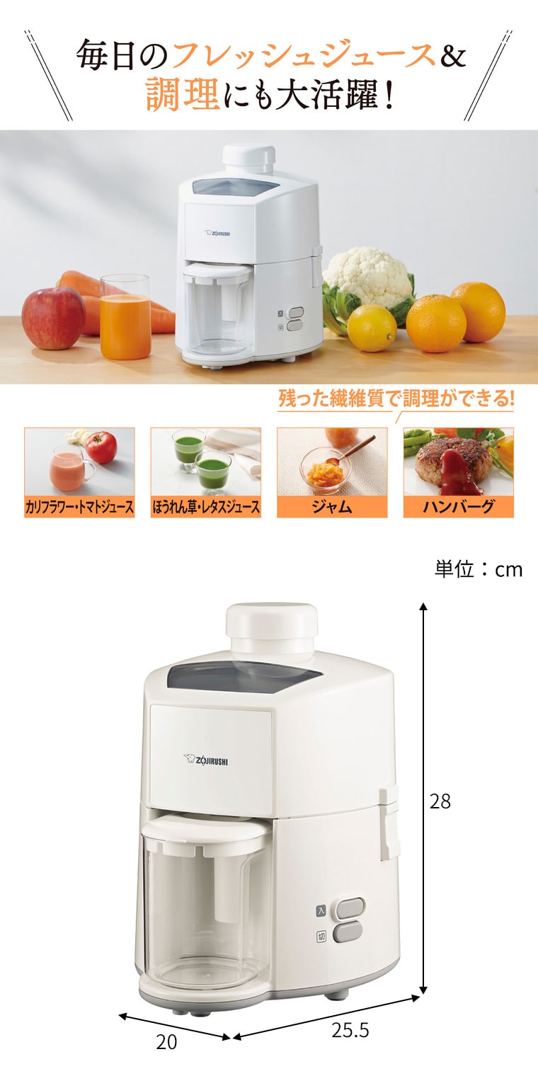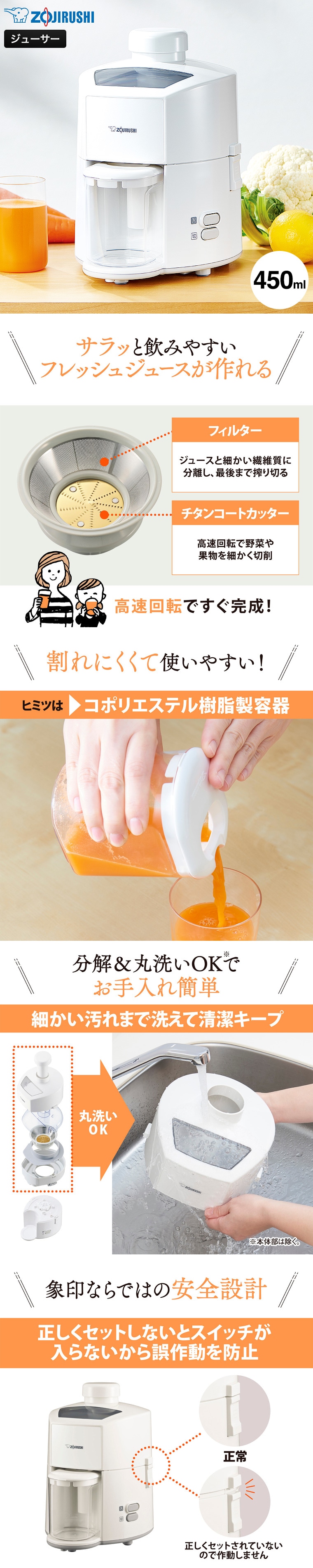 象印 ジューサー ホワイト BM-JK05 送料無料 / 450ml 野菜ジュース フレッシュジュース 果物 分解丸洗い可能 軽くて丈夫 安全設計 コンパクト 静音設計 コポリエステル樹脂製容器 ZOJIRUSHI キッチン家電 調理家電 JGS