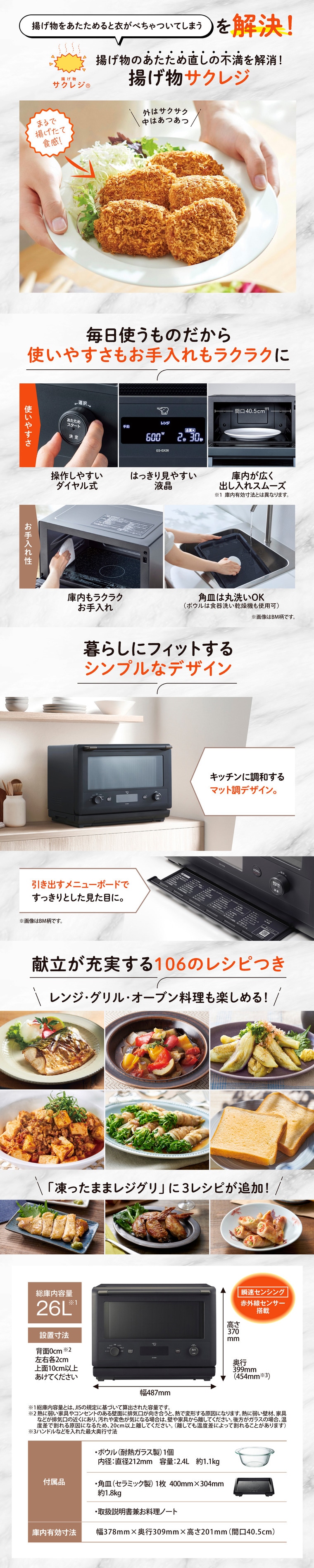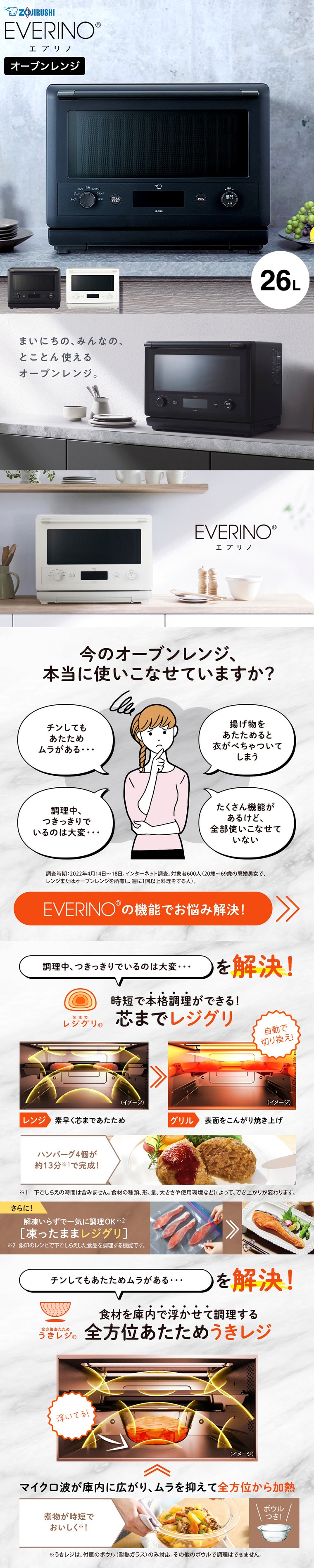 象印 オーブンレンジ EVERINO ブラック ホワイト ES-GX26 送料無料 / 26L 電子レンジ トースト 庫内フラット オーブン料理 グリル料理 ボウル付き 角皿 食パン 揚げ物 あたため直し 新生活 ZOJIRUSHI キッチン家電 調理家電 JGS / スレートブラック
