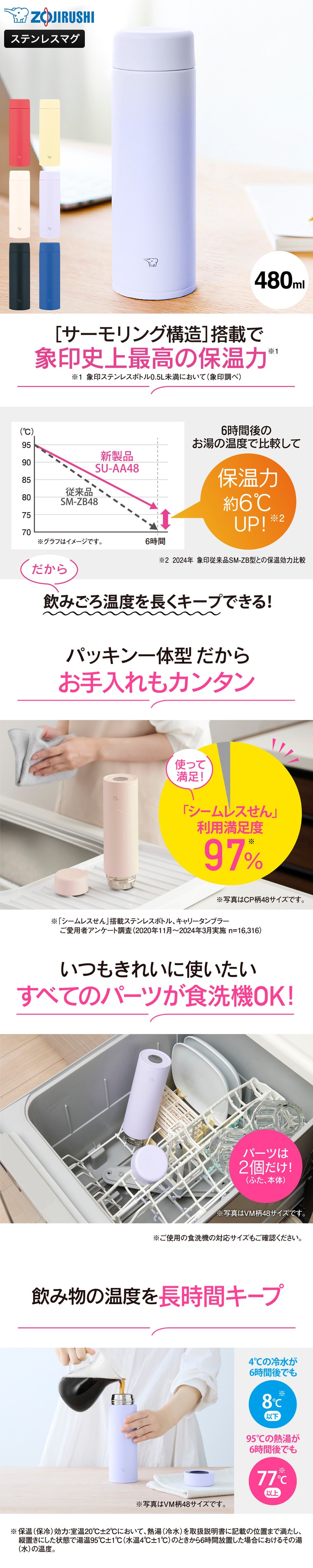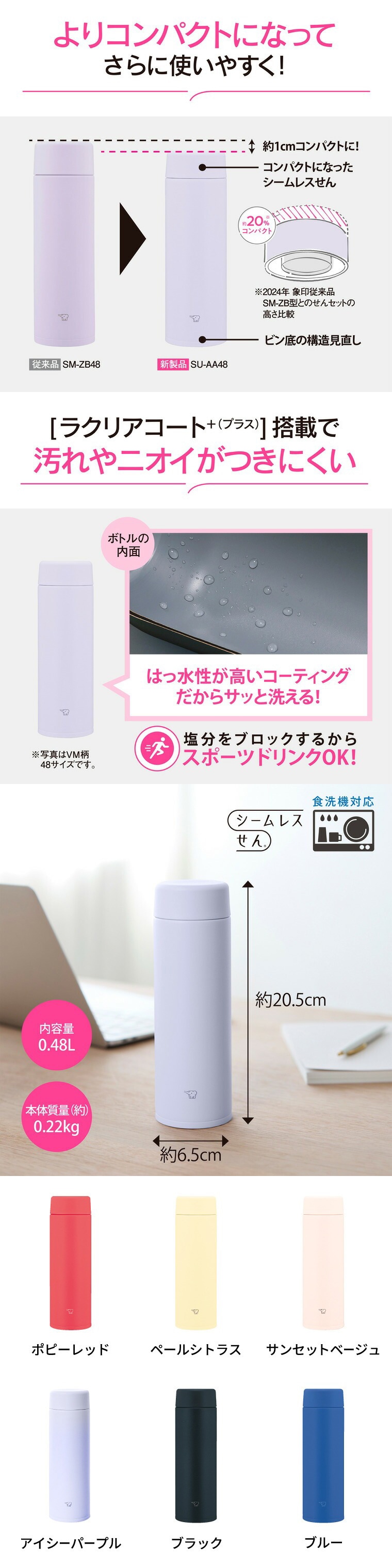 象印 ステンレスマグ SU-AA48 送料無料 / 480mL 水筒 マグボトル ステンレスボトル 食洗機対応 食洗器 保温 保冷 シームレスせん 直飲み かわいい おしゃれ ZOJIRUSHI キッチン家電 調理家電 JGS / ブラック