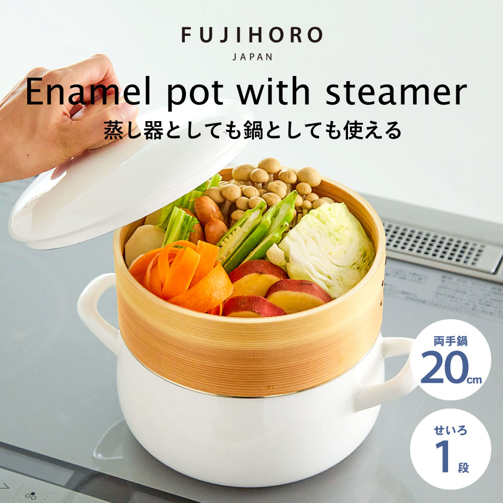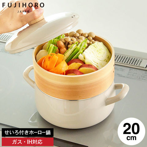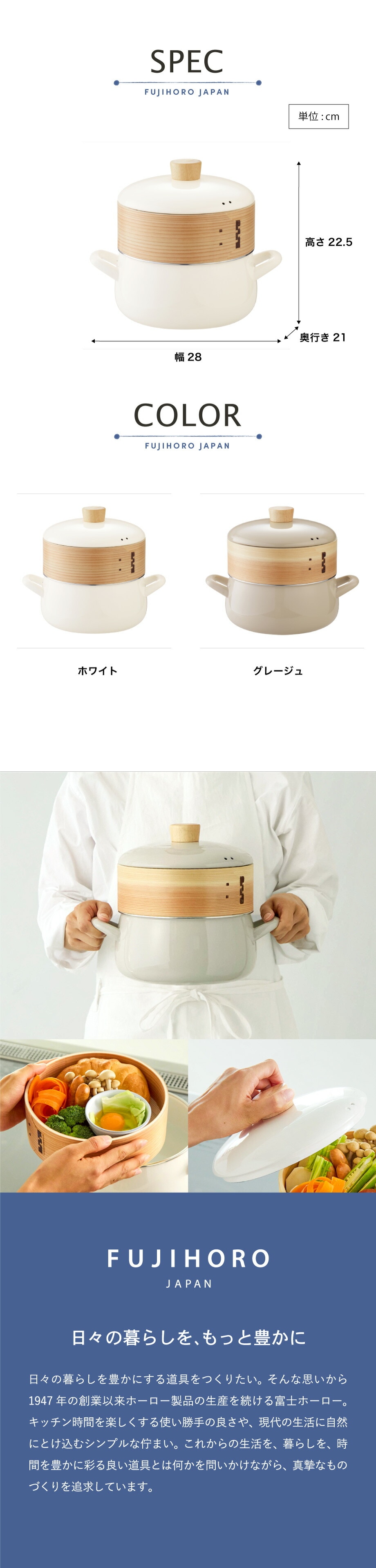富士ホーロー せいろ付きホーロー鍋 20cm SER-20W / IH対応 ガス火対応 食洗機対応 両手鍋 せいろ蒸し 蒸し料理 せいろ 蒸篭 蒸籠 琺瑯 シート おしゃれ 蒸しパン 調理 ほうろう 琺瑯鍋 新生活 一人暮らし FUJIHORO 送料無料 / グレージュ