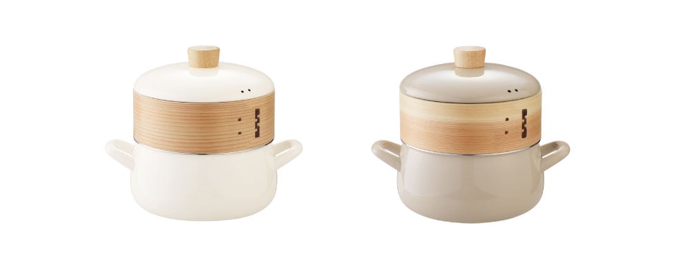 両手鍋は汚れが落ちやすく匂いもつきにくいホーロー製。色移りもしないので、見た目もいつまでも衛生的に保てます。せいろは、お湯で湿らせた布で拭くだけでOK。油汚れはぬるま湯でサッと洗い、風通しのいい場所で乾燥させます。