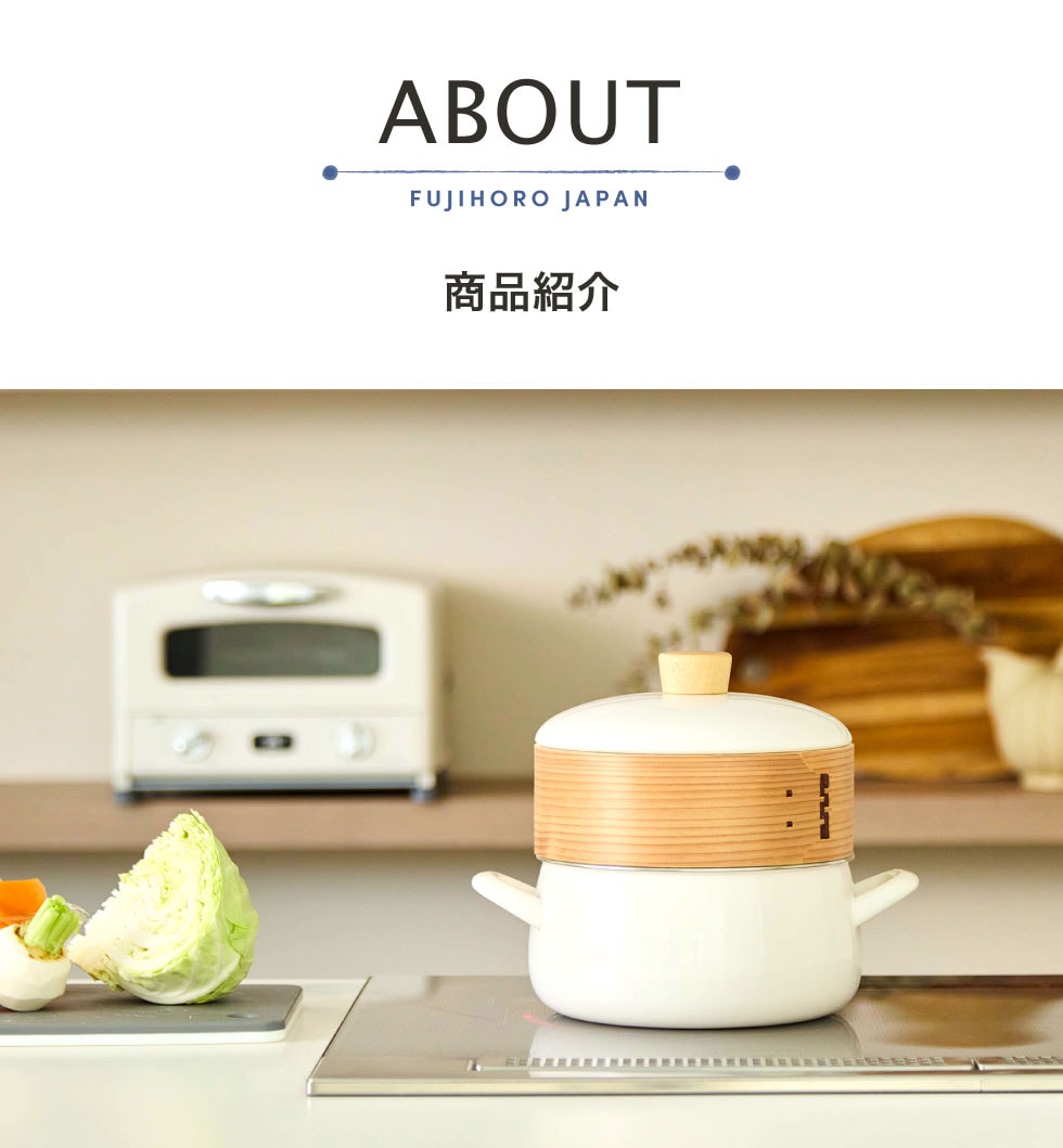 ホーロー鍋とせいろがセットになったせいろ付きホーロー鍋、両手鍋20cm、せいろ1段タイプです。せいろを鍋にのせて蒸すだけで、いつもの野菜や点心がふっくらツヤツヤお店のような仕上がりに。せいろを外せば、IHやガスなど様々な熱源に対応した両手鍋としても使えて便利です。鍋、せいろ共にお手入れも簡単です。