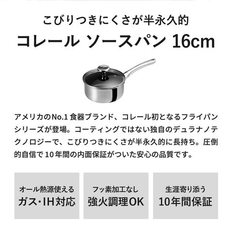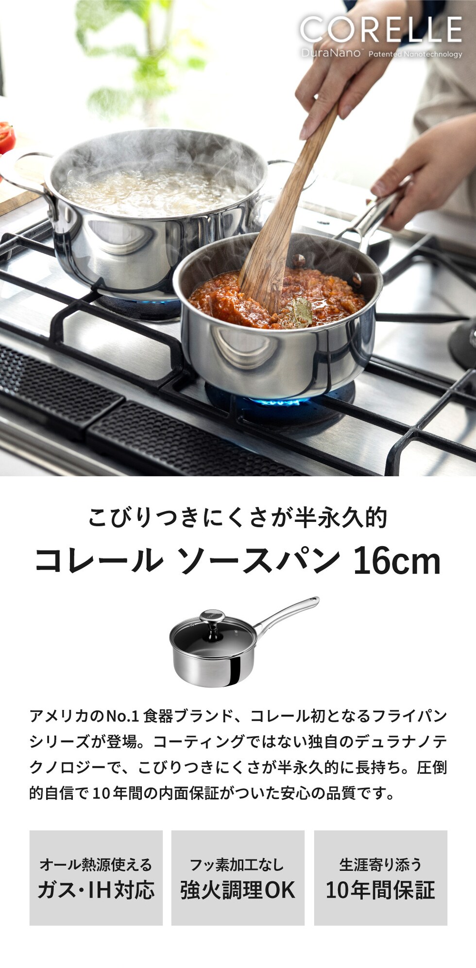 CORELLE コレール ソースパン 16cm ガラスふた付 CSS16SVWL 送料無料 / 片手鍋 ガラス蓋付き IH対応 ガス火対応 食洗機可 10年保証 焦げ付きにくい 長持ち 調理器具 キッチン用品 キッチンツール ドウシシャ DOSHISYA JGS