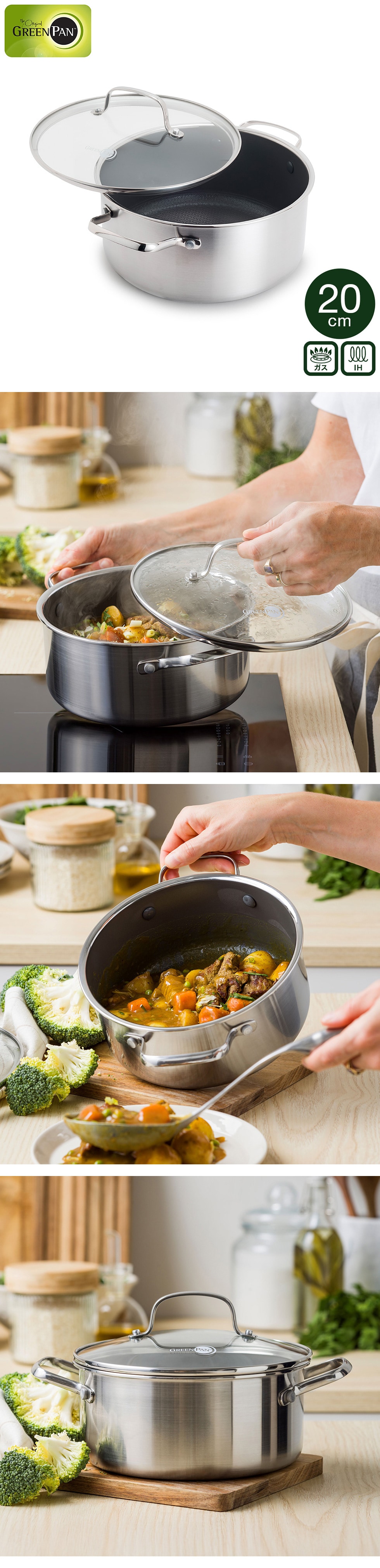 グリーンパン エーペックス キャセロール 20cm ガラス蓋付き CC010626-104 送料無料 / 両手鍋 IH対応 ガス火対応 食洗器対応 オーブン対応 ふた付き 深型 煮物 カレー 味噌汁 GREENPAN APEX 調理器具 キッチン用品 新生活