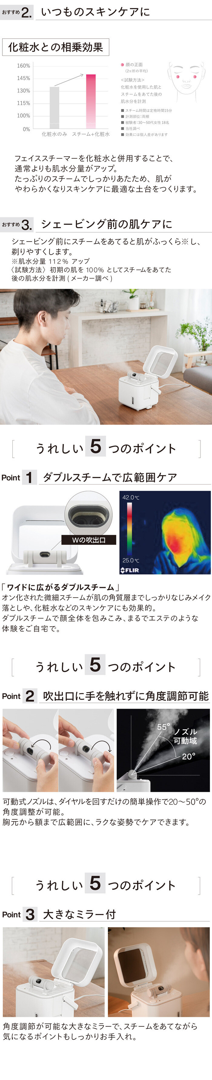 全品ポイントUP中!ツインバード スチーマー 美顔器 フェイススチーマー SH-2787PW ESH-2787W 送料無料 / TWINBIRD 美容器 顔用 保湿 ミラー付 取っ手付 可動式ノズル 角度調整可能 取っ手付き コンパクト JGS / パールホワイト