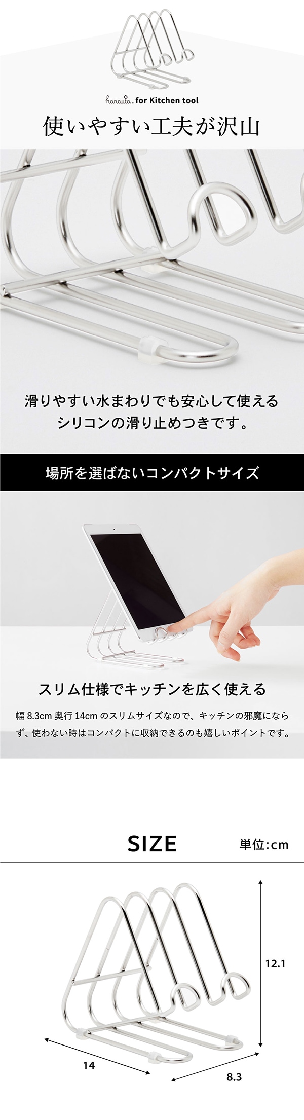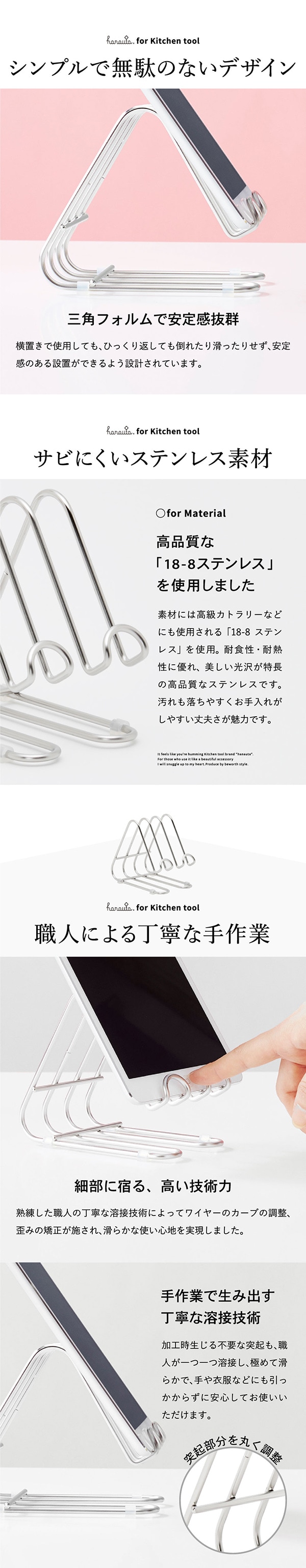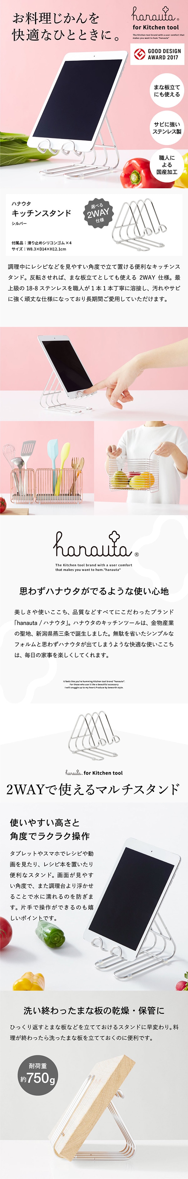 キッチンスタンド SR シルバー hanauta ハナウタ ビーワーススタイル / キッチン 水切り まな板スタンド まな板立て スマートフォンスタンド スマホスタンド タブレットスタンド ステンレス 日本製 SS-310140