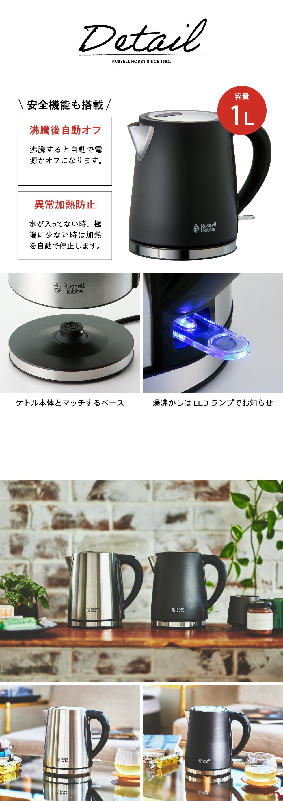 ラッセルホブス ケトル ステンレス Russell Hobbs ベーシックケトル 1.0L 7013JP 7013JP-BK 送料無料 / 電気ケトル 電気ポット 湯沸かし器 オートオフ 空焚き防止 シンプル おしゃれ キッチン家電 / シルバー kettle