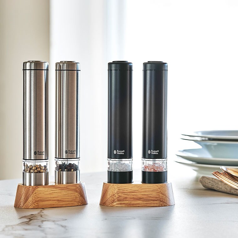 ラッセルホブス russell hobbs 電動ミル ソルト&ペッパー ミニ 7933JP 送料無料 / 岩塩挽き 胡椒挽き 粗挽き 細引き ペッパーミル ソルトミル シンプル おしゃれ キッチン家電 / シルバー