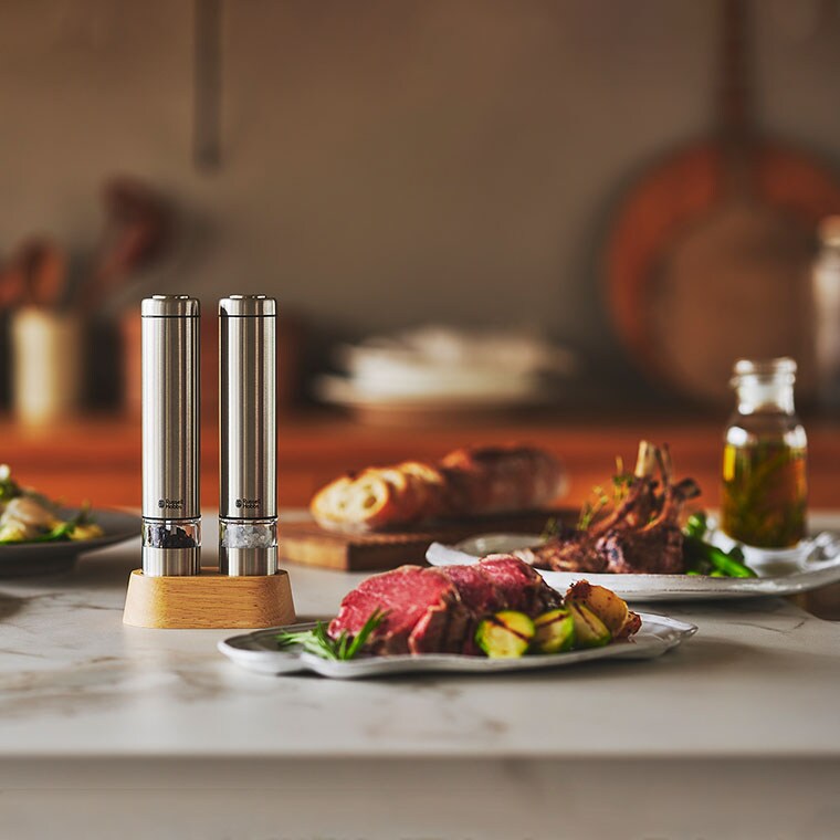 洗練されたスタイリッシュなデザインでキッチンやテーブルに置いてもお洒落で、ステンレスの質感は清潔感のある印象を与えてくれます。電池式で持ち運びができるので、アウトドアに持っていけば野外で味わう料理も格別に。お洒落でお料理好きな方へのプレゼントにもおすすめです。
