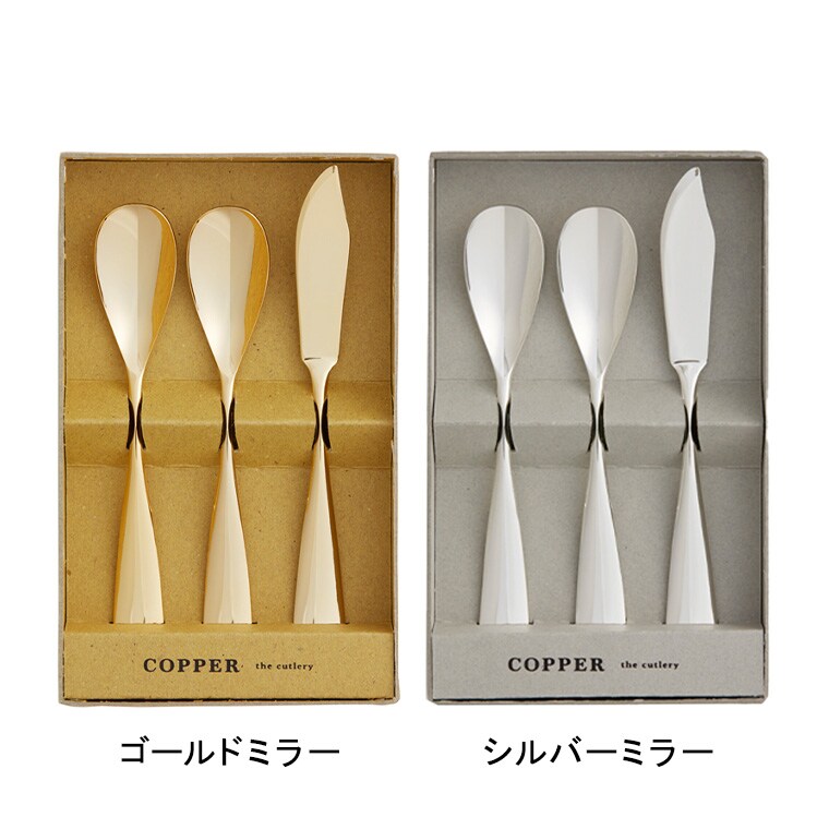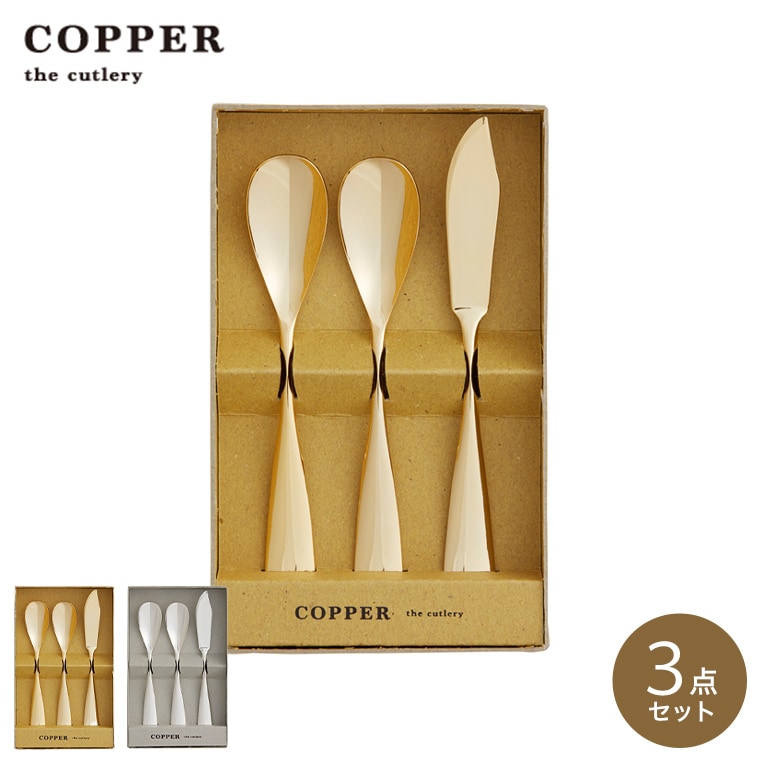 カトラリーセット COPPER the cutlery アイスクリームスプーン・バターナイフ 3本セット ミラー仕上げ 送料無料 カパーザカトラリー 熱伝導率の高い銅製 アイス専用スプーン 銅製品 スプーン バターナイフ 結婚祝い 内祝い 新築祝い ギフト プレゼント おしゃれ / シルバーミラー