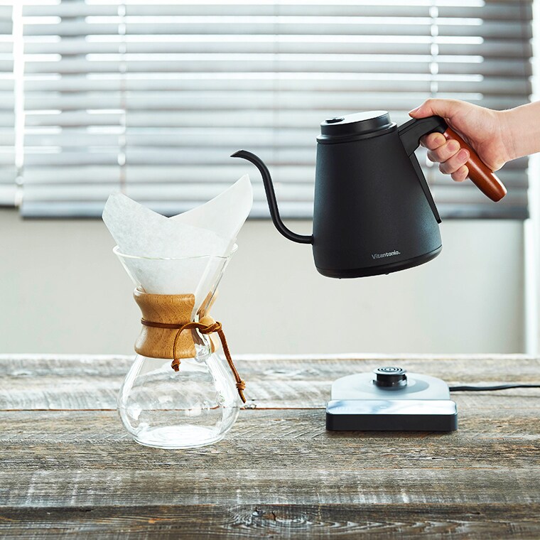 自分好みの一杯を淹れるための、トップバリスタ監修の温調ドリップケトル。細口ノズルとハンドルの絶妙なバランス、細かな温度調節とこだわりの「バリスタ機能」で、コーヒーの味と豊かな香りをぐっと引き出します。理想の形と温度で実現する、こだわりの味でくつろぎを。